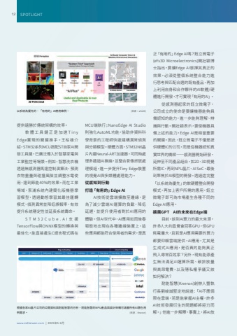 www.eettaiwan.com | 2025%u5e745-6%u670812 SPOTLIGHT%u63d0%u4f9b%u9060%u52dd%u65bc%u50b3%u7d71%u67b6%u69cb%u7684%u6548%u7387%u3002%u8edf %u9ad4 %u5de5 %u5177 %u93c8 %u6b63 %u662f %u52a0 %u901f T i n y Edge%u5be6 %u73fe%u7684%u95dc %u9375 %u63a8%u624b%u3002%u738b%u67cf%u96c4 %u4ecb%u7d39%uff0cSTM32%u7cfb%u5217MCU%u642d%u914dST%u81ea%u5bb6AI%u958b%u767c%u5de5%u5177%u93c8%uff0c%u5df2%u5ee3%u6cdb%u5c0e%u5165%u65bc%u667a%u6167%u5bb6%u96fb%u8207%u5de5%u696d%u76e3%u63a7%u7b49%u5834%u666f%u3002%u4f8b%u5982%uff0c%u667a%u6167%u6d17%u8863%u6a5f%u900f%u904e%u7121%u611f%u6e2c%u5668%u99ac%u9054%u63a7%u5236%u6f14%u7b97%u6cd5%uff0c%u9810%u6e2c%u8863%u7269%u91cd%u91cf%u8207%u78b0%u649e%u98a8%u96aa%u4e26%u8abf%u6574%u6c34%u96fb%u4f7f%u7528%uff0c%u9054%u5230%u7bc0%u80fd40%%u7684%u6548%u679c%u3002%u800c%u5728%u5de5%u696d%u5834%u57df%uff0c%u6cf5%u6d66%u7cfb%u7d71%u5167%u5efa%u7c21%u5316%u7248%u6a5f%u5668%u5b78%u7fd2%u6a21%u578b%uff0c%u900f%u904e%u52d5%u614b%u5b78%u7fd2%u5176%u6700%u4f73%u904b%u8f49%u6a21%u5f0f%u3001%u5075%u6e2c%u7570%u5e38%u4e26%u964d%u4f4e%u8aa4%u5831%u7387%uff0c%u6709%u6548%u63d0%u5347%u7cfb%u7d71%u7a69%u5b9a%u6027%u4e26%u5ef6%u9577%u7cfb%u7d71%u58fd%u547d%u3002STM32Cube.AI%u652f%u63f4TensorFlow%u8207ONNX%u6a21%u578b%u7684%u8f49%u63db%u8207%u6700%u4f73%u5316%uff0c%u80fd%u76f4%u63a5%u7522%u751fC%u8a9e%u8a00%u7a0b%u5f0f%u78bc%u5728MCU%u7aef%u57f7%u884c%uff1bNanoEdge AI Studio%u5247%u5f37%u5316AutoML%u529f%u80fd%uff0c%u5354%u52a9%u975e%u8cc7%u6599%u79d1%u5b78%u80cc%u666f%u7684%u5de5%u7a0b%u5e2b%u5feb%u901f%u5efa%u69cb%u7570%u5e38%u5075%u6e2c%u8207%u5206%u985e%u6a21%u578b%u3002%u786c%u9ad4%u65b9%u9762%uff0cSTM32N6%u6676%u7247%u5167%u5efaNeural-ART%u52a0%u901f%u5668%uff0c%u53ef%u540c%u6642%u8655%u7406%u591a%u901a%u9053AI%u63a8%u8ad6%uff0c%u4e26%u6574%u5408%u5f71%u50cf%u8a0a%u865f%u8655%u7406%u6a21%u7d44%uff0c%u9032%u4e00%u6b65%u63d0%u5347Tiny Edge%u88dd%u7f6e%u7684%u8996%u89baAI%u8207%u591a%u5a92%u9ad4%u8655%u7406%u80fd%u529b%u3002%u5f9e%u611f%u77e5%u5230%u884c%u52d5%u3000%u6253%u9020%u300c%u6709%u7528%u7684%u300dEdge AIAI%u6280%u8853%u5f9e%u96f2%u7aef%u64f4%u6563%u81f3%u908a%u7de3%uff0c%u662f%u70ba%u4e86%u6e1b%u5c11%u96f2%u7aefAI%u904b%u7b97%u7684%u8ca0%u8f09%uff0c%u964d%u4f4e%u5ef6%u9072%uff0c%u4e26%u63d0%u5347%u4f7f%u7528%u8005%u5c0d%u65bcAI%u61c9%u7528%u7684%u9ad4%u9a57%u3002%u4f46AI%u4e16%u4ee3%u4e2d%uff0cAI%u61c9%u7528%u5982%u96e8%u5f8c%u6625%u7b4d%u822c%u5730%u51fa%u73fe%u5728%u5404%u7a2e%u908a%u7de3%u88dd%u7f6e%u4e0a%uff0c%u9019%u4e9b%u61c9%u7528%u90fd%u80fd%u7b26%u5408%u4f7f%u7528%u8005%u7684%u9700%u6c42%uff0c%u662f%u771f%u4ee5%u7cfb%u7d71%u70ba%u512a%u5148%u7684%u3001%u300c%u6709%u7528%u7684%u300dAI%u61c9%u7528%u6848%u4f8b%u3002%u0009 %u0009 %u0009 %u0009 (%u4f86%u6e90%uff1aeYs3D)%u6839%u64da%u5404%u5bb6AI%u6676%u7247%u516c%u53f8%u7684%u516c%u958b%u8cc7%u6599%u8207%u8010%u80fd%u667a%u6167%u7684%u5206%u6790%uff0c%u8010%u80fd%u667a%u6167%u7684NPU%u7522%u54c1%u8207%u8a2d%u8a08%u67b6%u69cb%u53ef%u6db5%u84cb%u6240%u6709AI%u6f5b%u5728%u7528%u4f8b%u9700%u6c42%u3002%u0009 %u0009 %u0009 %u0009 %u0009 %u0009 %u0009 (%u4f86%u6e90%uff1aKneron)%u6b63%u300c%u6709%u7528%u7684%u300dEdge AI%u55ce%uff1f%u923a%u7acb%u5fae%u96fb%u5b50(eYs3D Microelectronics)%u95d5%u58ef%u7a4e%u535a%u58eb%u6307%u51fa%uff0c%u8981%u8b93Edge AI%u767c%u63ee%u5176%u771f%u6b63%u7684%u6548%u679c%uff0c%u5fc5%u9808%u5f9e%u6574%u500b%u7cfb%u7d71%u6574%u5408%u80fd%u529b%u9032%u884c%u601d%u8003%u8207%u5339%u914d%u5408%u9069%u7684%u65e2%u6709%u7522%u54c1%uff0c%u518d%u52a0%u4e0a%u5229%u7528%u81ea%u8eab%u548c%u5408%u4f5c%u5925%u4f34%u7684AI%u8edf%u9ad4/%u786c%u9ad4%u9032%u884c%u958b%u767c%uff0c%u624d%u53ef%u5be6%u73fe%u300c%u6709%u7528%u7684AI%u300d%u3002%u5f9e%u611f%u6e2c%u5668%u8d77%u5bb6%u7684%u923a%u7acb%u5fae%u96fb%u5b50%uff0c%u516c%u53f8%u6210%u7acb%u7684%u4f7f%u547d%u662f%u8981%u8b93%u6a5f%u5668%u80fd%u5920%u5177%u5099%u8a8d%u77e5%u7684%u80fd%u529b%uff0c%u9032%u4e00%u6b65%u80fd%u5920%u7406%u89e3%u3001%u8fa8%u8b58%u8207%u884c%u52d5%u3002%u95d5%u58ef%u7a4e%u8868%u793a%uff0c%u8981%u4f7f%u6a5f%u5668%u5177%u5099%u4e0a%u8ff0%u7684%u80fd%u529b%uff0cEdge AI%u662f%u76f8%u7576%u91cd%u8981%u7684%u95dc%u9375%u3002%u56e0%u6b64%uff0c%u923a%u7acb%u5fae%u96fb%u5b50%u4e0d%u50c5%u662f%u63d0%u4f9b%u786c%u9ad4IC%u7684%u516c%u53f8%uff0c%u800c%u662f%u5f9e%u6a5f%u5668%u8a8d%u77e5%u771f%u5be6%u4e16%u754c%u7684%u6a4b%u6a11%u2014%u2014%u611f%u6e2c%u5668%u958b%u59cb%u7814%u767c%uff0c%u5ef6%u4f38%u81f3%u4e0d%u540c%u7522%u54c1%u7d44%u5408%uff0c%u59822D%u30013D%u8996%u89ba%u6240%u9700IC%uff0c%u518d%u5230NPU%u6676%u7247%u3001AI SoC%uff0c%u6700%u5f8c%u5230%u805a%u7126%u65bcAI%u6a21%u578b%u7684%u958b%u767c%u3002%u900f%u904e%u9019%u5b8c%u6574%u300c%u4ee5%u7cfb%u7d71%u70ba%u512a%u5148%u300d%u7684%u8edf%u786c%u9ad4%u6574%u5408%u958b%u767c%u6a21%u5f0f%uff0c%u518d%u52a0%u4e0a%u5ba2%u6236%u6240%u9700%u7684%u61c9%u7528%uff0c%u923a%u7acb%u5fae%u96fb%u5b50%u5373%u53ef%u70ba%u5e02%u5834%u7522%u751f%u5404%u7a2e%u4e0d%u540c%u7684Edge AI%u61c9%u7528%u3002%u64f4%u5c55GPT%u3000AI%u7684%u672a%u4f86%u5728Edge%u7aef%u76ee%u524d%uff0c%u8ac7%u5230AI%u7b97%u529b%u7684%u6700%u5927%u4f86%u6e90%uff0c%u8a31%u591a%u4eba%u5927%u7d04%u76f4%u89ba%u6703%u56de%u7b54GPU%uff0c%u4f46GPU%u8017%u96fb%u91cf%u5927%uff0c%u4e14%u82e5%u662fAI%u61c9%u7528%u9700%u8981%u7684%u7b97%u529b%u90fd%u8981%u4ef0%u8cf4%u96f2%u7aef%u63d0%u4f9b%uff0cAI%u61c9%u7528%uff0c%u5c24%u5176%u662f%u751f%u6210%u5f0fAI%u61c9%u7528%uff0c%u662f%u5426%u771f%u7684%u80fd%u5920%u771f%u6b63%u98db%u5165%u5c0b%u5e38%u767e%u59d3%u5bb6%uff1f%u53e6%u5916%uff0c%u73fe%u6709%u80fd%u6e90%u7522%u751f%u7121%u6cd5%u6eff%u8db3AI%u904b%u7b97%u6240%u9700%u3001%u78b3%u6392%u653e%u91cf%u8207%u9ad8%u6602%u96fb%u8cbb%uff0c%u4ee5%u53ca%u96b1%u79c1%u6b0a%u722d%u8b70%u53c8%u8a72%u5982%u4f55%u89e3%u6c7a%uff1f%u8010%u80fd%u667a%u6167(Kneron)%u5275%u8fa6%u4eba%u66a8%u57f7%u884c%u9577%u5289%u5cfb%u8aa0%u5805%u5b9a%u5730%u8aaa%u9053%uff1a%u300cAI%u4e0d%u61c9%u4fb7%u9650%u5728%u96f2%u7aef%uff0c%u82e5%u662f%u80fd%u638c%u63e1AI%u4e3b%u6b0a%uff0c%u8a31%u591aAI%u6280