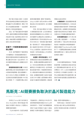 www.eettaiwan.com | 2025%u5e745-6%u670818 INDUSTRY TRENDS%u5c0d%u65bc%u96fb%u529b%u7684%u9f90%u5927%u9700%u6c42%uff0c%u4e5f%u4f7f%u696d%u754c%u7684%u8a0e%u8ad6%u7126%u9ede%u5f9e%u50b3%u7d71%u7684%u9577%u671f%u80fd%u6e90%u4f9b%u61c9%u5354%u8b70(PPA)%u8207%u63a1%u8cfc%u5951%u7d04%uff0c%u8f49%u5411%u4e86%u66f4%u6df1%u5165%u7684%u57fa%u790e%u8a2d%u65bd%u898f%u5283%u2014%u2014%u5305%u62ec%u63a2%u7d22%u5c08%u7528%u7684%u5c0f%u578b%u6838%u80fd%u767c%u96fb%u8a2d%u65bd%u3002%u56e0%u6b64%uff0c%u82e5%u4e0d%u5fb9%u5e95%u91cd%u65b0%u601d%u8003%u904b%u7b97%u6548%u7387%uff0c%u7522%u696d%u6050%u5c07%u89f8%u53ca%u7269%u7406%u8207%u7d93%u6fdf%u5c64%u9762%u7684%u80fd%u6e90%u5929%u82b1%u677f%uff0c%u9032%u800c%u9650%u5236AI%u8207HPC%u7684%u666e%u53ca%uff0c%u7121%u8ad6%u6f14%u7b97%u6cd5%u6216%u786c%u9ad4%u5982%u4f55%u9032%u6b65%uff0c%u5275%u65b0%u4e4b%u8def%u4e5f%u5c07%u53d7%u5230%u963b%u7919%u3002%u5b9a%u7fa9%u4e0b%u4e00%u4ee3%u904b%u7b97%u57fa%u790e%u8a2d%u65bd%u7684%u6838%u5fc3%u9700%u6c42%u672a%u4f86%uff0c%u6211%u5011%u9700%u8981%u7684%u4e0d%u50c5%u662f%u66f4%u5f37%u5927%u7684%u904b%u7b97%u80fd%u529b%uff0c%u66f4%u662f%u80fd%u96a8%u61c9%u7528%u7a0b%u5f0f%u3001%u958b%u767c%u67b6%u69cb%u8207%u5546%u696d%u9700%u6c42%u6301%u7e8c%u6f14%u9032%u7684%u667a%u6167%u4e14%u9748%u6d3b%u7684%u7cfb%u7d71%u3002%u5728%u6b64%u65b0%u6642%u4ee3%uff0c%u672a%u4f86%u7684%u904b%u7b97%u67b6%u69cb%u5c07%u7531%u56db%u5927%u95dc%u9375%u652f%u67f1%u6240%u5b9a%u7fa9%uff1a%u5373%u63d2%u5373%u7528%u7684%u66ff%u4ee3%u65b9%u6848%uff1a%u672a%u4f86%u7684%u904b%u7b97%u67b6%u69cb%u5fc5%u9808%u6253%u7834%u9577%u671f%u56f0%u64feHPC%u8207AI%u9818%u57df%u7684%u79fb%u690d%u969c%u7919%u3002%u6b77%u53f2%u7d93%u9a57%u986f%u793a%uff0c%u5f9eCPU%u5230GPU%u7b49%u91cd%u5927%u67b6%u69cb%u8f49%u79fb%uff0c%u5f80%u5f80%u56e0%u76f8%u5bb9%u6027%u554f%u984c%u800c%u6b77%u7d93%u6578%u5341%u5e74%u624d%u80fd%u9010%u6b65%u843d%u5be6%u3002%u4e0b%u4e00%u4ee3%u904b%u7b97%u67b6%u69cb%u5fc5%u9808%u652f%u63f4%u66f4%u6d41%u66a2%u7684%u8f49%u63db%uff0c%u5be6%u73fe%u300c%u5373%u63d2%u5373%u7528%u300d(drop-in)%u6548%u679c%uff0c%u5982%u540cx86%u8207Arm%u67b6%u69cb%u85c9%u7531%u5f37%u5927%u7684%u5411%u5f8c%u76f8%u5bb9%u6027%uff0c%u6210%u529f%u63a8%u52d5%u5ee3%u6cdb%u63a1%u7528%u3002%u540c%u6642%uff0c%u73fe%u4ee3%u8a2d%u8a08%u61c9%u81f4%u529b%u65bc%u6d88%u9664%u5927%u898f%u6a21%u91cd%u5beb%u7a0b%u5f0f%u78bc%uff0c%u4ee5%u53ca%u4f9d%u8cf4%u7279%u5b9a%u5ee0%u5546%u9818%u57df%u5c08%u5c6c%u8a9e%u8a00(DSL)%u7684%u9700%u6c42%u3002%u672a%u4f86%u7684%u904b%u7b97%u5e73%u53f0%u61c9%u80fd%u539f%u751f%u652f%u63f4%u50cfMLA%u9019%u985e%u65b0%u8208%u6280%u8853%uff0c%u800c%u975e%u5982%u5176%u4ed6%u975eNvidia%u7684GPU%u8207ASIC%u4e00%u6a23%u4f9d%u8cf4%u5927%u91cf%u624b%u52d5%u8abf%u6574%u3002%u7406%u60f3%u60c5%u6cc1%u4e0b%uff0c%u958b%u767c%u8005%u50c5%u9700%u9032%u884c%u6700%u5c0f%u5e45%u5ea6%u7684%u7a0b%u5f0f%u4fee%u6539%uff0c%u5373%u53ef%u5728%u7d71%u4e00%u5e73%u53f0%u4e0a%u652f%u63f4%u65e2%u6709%u3001%u7576%u524d%u8207%u672a%u4f86%u7684%u6280%u8853%u5275%u65b0%uff0c%u5f9e%u800c%u52a0%u901f%u7522%u54c1%u4e0a%u5e02%u4e26%u964d%u4f4e%u4f9b%u61c9%u5546%u7d81%u5b9a%u7684%u98a8%u96aa%u3002%u81ea%u9069%u61c9%u3001%u5373%u6642%u6027%u80fd%u512a%u5316%uff1a%u696d%u754c%u4e9f%u9700%u5f9e%u56fa%u5b9a%u529f%u80fd%u578b%u52a0%u901f%u5668%u8f49%u5411%u4ee5%u667a%u6167%u5316%u3001%u8edf%u9ad4%u5b9a%u7fa9%u786c%u9ad4%u70ba%u57fa%u790e%u7684%u65b0%u5e73%u53f0%u3002%u672a%u4f86%u7cfb%u7d71%u61c9%u5177%u5099%u5728%u57f7%u884c%u671f%u9593%u6301%u7e8c%u5b78%u7fd2%u5de5%u4f5c%u8ca0%u8f09%u7684%u7279%u6027%uff0c%u4e26%u5373%u6642%u8abf%u6574%u81ea%u8eab%u904b%u4f5c%u6a21%u5f0f%uff0c%u7121%u8ad6%u61c9%u7528%u60c5%u5883%u70ba%u4f55%uff0c%u90fd%u80fd%u78ba%u4fdd%u6301%u7e8c%u9ad8%u6548%u5229%u7528%u8207%u7a69%u5b9a%u6548%u80fd%u3002%u9019%u7a2e%u52d5%u614b%u9069%u61c9%u529b%u6709%u52a9%u65bc%u7d44%u7e54%u5728%u57f7%u884cHPC%u6a21%u64ec%u3001%u8655%u7406%u8907%u96dcAI%u6a21%u578b%u6216%u9032%u884c%u5411%u91cf%u8cc7%u6599%u5eab%u904b%u7b97%u6642%uff0c%u90fd%u80fd%u7372%u7279%u65af%u62c9(Tesla)%u57f7%u884c%u9577 %u99ac%u65af%u514b(Elon Musk)%u8a8d%u70ba%uff0c%u638c%u63a7%u5148%u9032%u6676%u7247%u88fd%u9020%u80fd%u529b%u7684%u570b%u5bb6%uff0c%u5c07%u6210%u70ba%u4eba%u5de5%u667a%u6167(AI)%u7af6%u8cfd%u7684%u6700%u7d42%u8d0f%u5bb6%u3002%u300c%u5728%u672a%u4f86%u5e7e%u5e74%u5167%uff0c%u6211%u8a8d%u70ba%u7f8e%u570b%u53ef%u80fd%u6703%u9818%u5148%uff0c%u300d%u99ac%u65af%u514b%u5728%u4eca%u5e743%u670817%u65e5%u63a5%u53d7%u7f8e%u570b%u53c3%u8b70%u54e1%u514b%u9b6f%u8332(Ted Cruz)%u7684%u63a1%u8a2a%u6642%u8868%u793a%u3002%u300c%u4f46%u63a5%u4e0b%u4f86%u7684%u95dc%u9375%u662f%u8ab0%u63a7%u5236%u4e86AI%u6676%u7247%u7684%u88fd%u9020%uff1fAI%u6676%u7247%u5de5%u5ee0%u7531%u8ab0%u638c%u63a7%uff1f%u5982%u679c%u4e2d%u570b%u638c%u63a7%u4e86%u66f4%u591a%u7684%u6676%u7247%u99ac%u65af%u514b%uff1aAI%u7af6%u8cfd%u52dd%u8ca0%u53d6%u6c7a%u65bc%u6676%u7247%u88fd%u9020%u80fd%u529bAlan Patterson%uff0cEE Times%u7279%u7d04%u4f5c%u8005%u5f97%u7a69%u5b9a%u4e14%u9ad8%u6548%u8868%u73fe%u3002%u5927%u898f%u6a21%u6548%u7387%uff1a%u900f%u904e%u786c%u9ad4%u8207%u8edf%u9ad4%u89e3%u8026%u5408%u8207%u5373%u6642%u667a%u6167%u6700%u4f73%u5316%uff0c%u672a%u4f86%u7cfb%u7d71%u80fd%u5920%u9054%u5230%u66f4%u9ad8%u7684%u4f7f%u7528%u7387%uff0c%u540c%u6642%u964d%u4f4e%u6574%u9ad4%u80fd%u6e90%u6d88%u8017%u3002%u9019%u7a2e%u6a21%u5f0f%u5c07%u4f7f%u57fa%u790e%u8a2d%u65bd%u904b%u4f5c%u66f4%u7d93%u6fdf%u9ad8%u6548%u4e14%u53ef%u64f4%u5c55%uff0c%u9806%u5229%u652f%u63f4%u672a%u4f86%u5de5%u4f5c%u8ca0%u8f09%u6301%u7e8c%u6f14%u9032%u7684%u9700%u6c42%u3002%u672a%u4f86%u9069%u61c9%u6027%u8a2d%u8a08%uff1aHPC%u8207AI%u9818%u57df%u6b63%u4ee5%u9a5a%u4eba%u901f%u5ea6%u8b8a%u9769%u2014%u2014%u4eca%u65e5%u6700%u5c16%u7aef%u7684%u6f14%u7b97%u6cd5%uff0c%u53ef%u80fd%u5728%u660e%u65e5%u4fbf%u6210%u70ba%u904e%u6642%u6280%u8853%u3002%u7121%u8ad6%u9762%u5c0dAI%u795e%u7d93%u7db2%u8def%u8b8a%u9769%uff0c%u9084%u662f%u652f%u63f4%u57fa%u65bcTransformer%u7684LLM%u5275%u65b0%uff0c%u4e0b%u4e00%u4ee3%u904b%u7b97