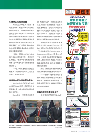 2025%u5e745-6%u6708 | www.eettaiwan.comINDUSTRY TRENDS 19%u4eca%u5e743%u6708%u521d%uff0c%u53f0%u7a4d%u96fb%u52a0%u78bc%u5c0d%u7f8e%u6295%u8cc7%u5343%u5104%u7f8e%u5143%u3002(%u7531%u5de6%u81f3%u53f3)%u53f0%u7a4d%u96fb%u57f7%u884c%u9577%u9b4f%u54f2%u5bb6%u3001%u7f8e%u570b%u7e3d%u7d71%u5ddd%u666e%u4ee5%u53ca%u7f8e%u570b%u5546%u52d9%u90e8%u9577Howard Lutnick%u3002%u0009 %u0009 %u0009 %u0009 %u0009 (%u4f86%u6e90%uff1aC-SPAN)AI%u7522%u696d%u7684%u4f48%u5c40%u8207%u6311%u6230%u99ac%u65af%u514b%u6b63%u5927%u8209%u6295%u8cc7AI%u9818%u57df%u3002%u64da%u8def%u900f%u793e%u5831%u5c0e%uff0c%u8f1d%u9054(Nvidia)%u8207%u99ac%u65af%u514b%u65d7%u4e0b%u7684xAI%u5df2%u52a0%u5165%u7531%u5fae%u8edf(Microsoft)%u3001%u6295%u8cc7%u57fa%u91d1MGX%u8207BlackRock%u6240%u652f%u6301%u7684%u8ca1%u5718%uff0c%u4ee5%u64f4%u5c55%u7f8e%u570b%u7684AI%u57fa%u790e%u8a2d%u65bd%uff0c%u5728%u9019%u5834%u65b0%u79d1%u6280%u7af6%u8cfd%u4e2d%u722d%u596a%u4e3b%u5c0e%u6b0a%u3002%u6b64%u5916%uff0c%u99ac%u65af%u514b%u7684%u7279%u65af%u62c9%u4e5f%u5728%u4f7f%u7528%u53f0%u7a4d%u96fb(TSMC)%u7684%u88fd%u9020%u7522%u80fd%uff0c%u70ba%u5176Dojo%u8d85%u7d1a%u96fb%u8166%u751f%u7522AI%u6676%u7247%uff0c%u4ee5%u7528%u65bc%u8a13%u7df4%u81ea%u52d5%u99d5%u99db%u6280%u8853%u3002%u300c%u76ee%u524d%uff0c%u5168%u7403%u7d04100%%u7684%u5148%u9032AI%u6676%u7247%u90fd%u7531%u53f0%u7063%u5730%u5340%u751f%u7522%uff0c%u300d%u99ac%u65af%u514b%u544a%u8a34%u514b%u9b6f%u8332%u3002%u300c%u5982%u679c%u4e2d%u570b%u5728%u77ed%u671f%u5167%u767c%u52d5%u653b%u64ca%uff0c%u5168%u7403%u5148%u9032AI%u6676%u7247%u7684%u4f9b%u61c9%u93c8%u5c07%u6703%u88ab%u5207%u65b7%u3002%u300d%u300cAI%u6676%u7247%u7684%u4f9b%u61c9%u5c0d%u570b%u5bb6%u5b89%u5168%u81f3%u95dc%u91cd%u8981%uff0c%u800c%u6211%u5011%u76ee%u524d%u7684%u52aa%u529b%u9084%u9060%u9060%u4e0d%u5920%uff0c%u300d%u99ac%u65af%u514b%u8868%u793a%u3002%u9ad8%u5ea6%u96c6%u4e2d%u65bc%u53f0%u7063%u5730%u5340%u7684%u98a8%u96aaSemiAnalysis%u5206%u6790%u5e2bJeff Koch%u5411%u300aEE Times%u300b%u8868%u793a%uff0c%u99ac%u65af%u514b%u5c0d%u65bc%u7f8e%u570b%u570b%u5bb6%u5b89%u5168%u3001AI%u6676%u7247%u8207%u53f0%u7063%u5730%u5340%u7684%u89c0%u9ede%u5927%u81f4%u6b63%u78ba%u3002Koch%u6307%u51fa%uff0c%u300c%u5c0d%u65bc%u96fb%u5b50%u7522%u696d%u4f86%u8aaa%uff0c%u5c24%u5176%u662fAI%u6676%u7247%uff0c%u904e%u5ea6%u4f9d%u8cf4%u53f0%u7063%u5730%u5340%u6975%u5177%u98a8%u96aa%u3002%u9019%u500b%u554f%u984c%u4e26%u4e0d%u50c5%u9650%u65bc%u5148%u9032%u908f%u8f2f%u88fd%u7a0b%uff0c%u9084%u5305%u62ec%u9ad8%u983b%u5bec%u8a18%u61b6%u9ad4(HBM)%u8207%u5148%u9032%u5c01%u88dd%u6280%u8853%u3002%u9019%u4e09%u9805%u80fd%u529b%u7f3a%u4e00%u4e0d%u53ef%uff0c%u800c%u7f8e%u570b%u5e7e%u4e4e%u6c92%u6709%u53ef%u5546%u696d%u5316%u7684%u76f8%u95dc%u7522%u80fd%uff0c%u81f3%u5c11%u8981%u6709%u50cf%u53f0%u7a4d%u96fb%u7684N3%u88fd%u7a0b%u8207CoWoS%u5c01%u88dd%u6280%u8853%u3002%u300d%u99ac%u65af%u514b%u7684%u89c0%u9ede%u53ef%u80fd%u6703%u5f71%u97ff%u7f8e%u570b%u7e3d%u7d71%u5ddd%u666e(Donald Trump)%uff0c%u56e0%u70ba%u5ddd%u666e%u65e5%u524d%u4efb%u547d%u99ac%u65af%u514b%u70ba%u65b0%u6210%u7acb%u7684%u300c%u653f%u5e9c%u6548%u7387%u90e8%u9580%u300d(Department of Government Efficiency)%u8ca0%u8cac%u4eba%u30023%u6708%u4e2d%u65ec%uff0c%u5ddd%u666e%u5ba3%u4f48%u53f0%u7a4d%u96fb%u5c07%u589e%u8cc71,000%u5104%u7f8e%u5143%u64f4%u5efa%u5176%u4f4d%u65bc%u7f8e%u570b%u4e9e%u5229%u6851%u90a3%u5dde%u9cf3%u51f0%u57ce%u7684%u6676%u5713%u5ee0%uff0c%u4ee5%u964d%u4f4e%u7f8e%u570b%u5c0d%u53f0%u7063%u5730%u5340%u7684%u4f9d%u8cf4%u3002%u7136%u800c%uff0c%u53f0%u7a4d%u96fb%u4e26%u672a%u63d0%u4f9b%u6709%u95dc%u9cf3%u51f0%u57ce%u6295%u8cc7%u8a08%u756b%u7684%u6280%u8853%u85cd%u5716%u6216%u6642%u9593%u8868%u3002Koch%u5f37%u8abf%uff0c%u300c%u50c5%u9760%u6a21%u7cca%u7684%u767e%u5104%u7f8e%u5143%u627f%u8afe%u4e26%u4e0d%u5920%u3002%u8a08%u756b%u5fc5%u9808%u5177%u9ad4%u8aaa%u660e%u6642%u9593%u3001%u88fd%u7a0b%u6280%u8853%u8207%u7522%u80fd%u898f%u6a21%uff0c%u4ee5%u78ba%u4fdd%u7f8e%u570b%u4e0d%u81f3%u65bc%u5728%u4e2d%u9577%u671f%u5167%u9762%u81e8AI%u6676%u7247%u4f9b%u61c9%u65b7%u5c64%u3002%u300dAI%u6676%u7247%u4f9d%u8cf4%u8207%u7f8e%u570b%u7af6%u722d%u529b%u4f4d %u65bc %u83ef %u5e9c %u7684 %u667a %u5eab A l b r i g h t EETT2504_027R_Meet - output_%u90e8%u52062.pdf