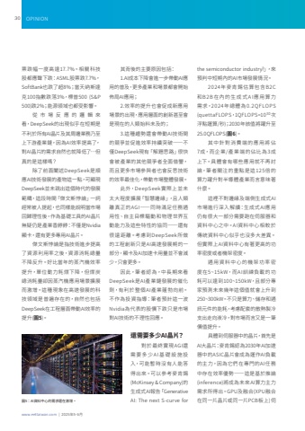 www.eettaiwan.com | 2025%u5e745-6%u670830 OPINION%u7968%u8dcc%u5e45%u4e00%u5ea6%u9ad8%u905417.7%%u3002%u76f8%u95dc%u79d1%u6280%u80a1%u90fd%u61c9%u8072%u4e0b%u8dcc%uff1aASML%u80a1%u7968%u8dcc7.7%%uff0cSoftBank%u4e5f%u8dcc%u4e86%u8d858%%uff1b%u7576%u5929%u7d0d%u65af%u9054%u514b100%u6307%u6578%u8dcc%u843d3%%uff0c%u6a19%u666e500 (S&P 500)%u8dcc2%%uff1b%u80fd%u6e90%u9818%u57df%u4e5f%u90fd%u53d7%u5f71%u97ff%u3002%u5f9e%u5e02%u5834%u53cd%u61c9%u7684%u908f%u8f2f%u4f86%u770b%uff0cDeepSeek%u7684%u51fa%u73fe%u4f3c%u4e4e%u5728%u77ed%u671f%u662f%u4e0d%u5229%u65bc%u6240%u6709AI%u6676%u7247%u53ca%u5176%u5468%u908a%u696d%u52d9%u4e43%u81f3%u4e0a%u4e0b%u6e38%u7522%u696d%u93c8%uff0c%u56e0%u70baAI%u6548%u7387%u63d0%u9ad8%u4e86%uff0c%u5c0dAI%u6676%u7247%u7684%u9700%u6c42%u81ea%u7136%u4e5f%u5c31%u964d%u4f4e%u4e86%u2026%u4f46%u771f%u7684%u662f%u9019%u6a23%u55ce%uff1f%u9664%u4e86%u524d%u9762%u95e1%u8ff0DeepSeek%u662f%u9806%u61c9AI%u6280%u8853%u767c%u5c55%u7684%u7522%u7269%u9019%u4e00%u9ede%uff0c%u53ef%u986f%u73feDeepSeek%u4e26%u672a%u8df3%u51fa%u9019%u500b%u6642%u4ee3%u7684%u767c%u5c55%u7bc4%u7587%uff0c%u9019%u6bb5%u6642%u9593%u300c%u5091%u6587%u65af%u6096%u8ad6%u300d%u4e00%u8a5e%u7d93%u5e38%u88ab%u4eba%u63d0%u8d77%uff0c%u4e5f%u540c%u6a23%u80fd%u8aaa%u660e%u7576%u5e02%u5834%u56de%u6b78%u7406%u6027%u5f8c%uff0c%u4f5c%u70ba%u57fa%u790e%u5de5%u5177%u7684AI%u6676%u7247%u7121%u7591%u4ecd%u662f%u7522%u696d%u9999%u9911%u9911%uff1a%u4e0d%u50c5%u662fNvidia%u986f%u5361%uff0c%u9084%u6709%u66f4%u591a%u5c08%u7528AI%u6676%u7247%u3002%u5091%u6587%u65af%u6096%u8ad6%u662f%u6307%u6280%u8853%u9032%u6b65%u63d0%u9ad8%u4e86%u8cc7%u6e90%u5229%u7528%u7387%u4e4b%u5f8c%uff0c%u8cc7%u6e90%u6d88%u8017%u7e3d%u91cf%u4e0d%u964d%u53cd%u5347%u3002%u597d%u6bd4%u7576%u5e74%u7684%u84b8%u6c7d%u6a5f%u6548%u7387%u63d0%u5347%uff0c%u55ae%u4f4d%u52d5%u529b%u8017%u7164%u4e0b%u964d%uff0c%u4f46%u7164%u70ad%u7e3d%u6d88%u8017%u91cf%u537b%u56e0%u84b8%u6c7d%u6a5f%u61c9%u7528%u5834%u666f%u64f4%u5c55%u800c%u6fc0%u589e%u3002%u9019%u7a2e%u73fe%u8c61%u5728%u9ad8%u901f%u767c%u5c55%u7684%u79d1%u6280%u9818%u57df%u662f%u666e%u904d%u5b58%u5728%u7684%uff0c%u81ea%u7136%u4e5f%u5305%u62ecDeepSeek%u5728%u5de5%u7a0b%u5c64%u9762%u5e36%u52d5AI%u6548%u7387%u7684%u63d0%u5347(%u57165)%u3002%u5176%u80cc%u5f8c%u7684%u4e3b%u8981%u539f%u56e0%u5305%u62ec%uff1a1.AI%u6210%u672c%u4e0b%u964d%u6703%u9032%u4e00%u6b65%u5e36%u52d5AI%u61c9%u7528%u7684%u666e%u53ca%uff0c%u66f4%u591a%u7522%u696d%u548c%u5834%u666f%u90fd%u6703%u958b%u59cb%u4f48%u5c40AI%u61c9%u7528%uff1b2.%u6548%u7387%u7684%u63d0%u5347%u4e5f%u6703%u4fc3%u6210%u65b0%u61c9%u7528%u5834%u666f%u7684%u51fa%u73fe%uff0c%u61c9%u7528%u5c64%u9762%u7684%u5275%u65b0%u751a%u81f3%u6703%u662f%u73fe%u5728%u7684%u4eba%u985e%u59cb%u6599%u672a%u53ca%u7684%uff1b3.%u9019%u7a2e%u8da8%u52e2%u9084%u6703%u5e36%u52d5AI%u6280%u8853%u9593%u7684%u7af6%u722d%u4e26%u4fc3%u9032%u6548%u7387%u6301%u7e8c%u7a81%u7834%u2014%u2014%u4e0d%u50c5DeepSeek%u73fe%u6709%u300c%u89e3%u984c%u601d%u8def%u300d%u5f88%u5feb%u6703%u88ab%u7522%u696d%u7684%u5176%u4ed6%u7af6%u722d%u8005%u5168%u9762%u501f%u9452%uff0c%u800c%u4e14%u66f4%u591a%u5e02%u5834%u53c3%u8207%u8005%u4e5f%u6703%u53cd%u601d%u6280%u8853%u7684%u6548%u7387%u6700%u4f73%u5316%uff0c%u5e36%u52d5%u5e02%u5834%u6574%u9ad4%u767c%u5c55%u3002%u6b64%u5916%uff0cDeepSeek%u5be6%u969b%u4e0a%u4e26%u672a%u592a%u5927%u7a0b%u5ea6%u64f4%u5c55%u300c%u667a%u6167%u908a%u7de3%u300d%uff0c%u4e14%u4eba%u985e%u96e2%u771f%u6b63%u7684AGI%u2014%u2014%u540c%u6642%u6eff%u8db3%u4efb%u52d9%u901a%u7528%u6027%u3001%u81ea%u4e3b%u76ee%u6a19%u9a45%u52d5%u548c%u7269%u7406%u4e16%u754c%u4e92%u52d5%u80fd%u529b%u53ca%u9019%u4e9b%u7279%u6027%u7684%u5354%u540c%u2014%u2014%u9084%u6709%u5f88%u9060%u8ddd%u96e2%u3002%u8003%u616e%u5230DeepSeek%u6240%u505a%u7684%u5de5%u7a0b%u5275%u65b0%u53ea%u662fAI%u9ad8%u901f%u767c%u5c55%u671f%u7684%u4e00%u90e8%u5206%uff0c%u986f%u5361%u53caAI%u52a0%u901f%u5361%u7528%u91cf%u4e26%u4e0d%u6703%u6e1b%u5c11%uff0c%u53ea%u6703%u66f4%u591a%u3002%u56e0%u6b64%uff0c%u7b46%u8005%u8a8d%u70ba%uff0c%u4e2d%u9577%u671f%u4f86%u770bDeepSeek%u662fAI%u7522%u696d%u93c8%u767c%u5c55%u7684%u50ac%u5316%u5291%uff0c%u6709%u5229%u65bc%u6574%u500bAI%u7522%u696d%u84ec%u52c3%u5411%u524d%u3002%u4e0d%u4f5c%u70ba%u6295%u8cc7%u6307%u5c0e%uff1a%u7b46%u8005%u9810%u8a08%u9019%u4e00%u6ce2Nvidia%u70ba%u4ee3%u8868%u7684%u80a1%u50f9%u4e0b%u8dcc%u53ea%u662f%u5e02%u5834%u5c0dAI%u6280%u8853%u7684%u4e0d%u7406%u6027%u56de%u61c9%u3002%u9084%u9700%u8981%u591a%u5c11AI%u6676%u7247%uff1f%u5c0d%u65bc%u6700%u7d42%u5be6%u73feAGI%u9084%u9700%u8981%u591a%u5c11AI%u57fa%u790e%u8a2d%u65bd%u6295%u5165%uff0c%u53ef%u80fd%u66ab%u6642%u6c92%u6709%u4eba%u80fd%u7b54%u5f97%u51fa%u4f86%u3002%u53ef%u4ee5%u53c3%u8003%u9ea5%u80af%u932b(McKinsey & Company)%u7684%u751f%u6210%u5f0fAI%u5831%u544a%u300cGenerative AI: The next S-curve for the semiconductor industry?%u300d%uff0c%u4f86%u9810%u5224%u4e2d%u77ed%u671f%u5167%u7684AI%u5e02%u5834%u767c%u5c55%u60c5%u6cc1%u30022024%u5e74%u9ea5%u80af%u932b%u4f30%u7b97%u5305%u542bB2C%u548cB2B%u5728%u5167%u7684%u751f%u6210%u5f0fAI%u61c9%u7528%u7b97%u529b%u9700%u6c42%uff0c2024 %u5e74%u7e3d%u9ad4%u70ba0.2QFLOPS (quettaFLOPS%uff0c1QFLOPS=1030%u6b21%u6d6e%u9ede%u904b%u7b97/%u79d2)%uff1b2030%u5e74%u8a72%u503c%u5c07%u8e8d%u5347%u81f325.0QFLOPS(%u57166)%u3002%u5176%u4e2d%u91dd%u5c0d%u6d88%u8cbb%u7aef%u7684%u61c9%u7528%u5c07%u4f547%u6210%uff0c%u800c%u4f01%u696d/%u7522%u696d%u7aef%u7684%u4f54%u6bd4 %u70ba3%u6210%u4e0a%u4e0b%u3002%u5177%u9ad4%u6703%u6709%u54ea%u4e9b%u61c9%u7528%u5c31%u4e0d%u518d%u8a0e%u8ad6%uff0c%u7b46%u8005%u95dc%u6ce8%u7684%u91cd%u9ede%u662f%u9019125%u500d%u7684%u7b97%u529b%u8e8d%u5347%u5c0d%u534a%u5c0e%u9ad4%u7522%u696d%u800c%u8a00%u610f%u5473%u8457%u4ec0%u9ebc%u3002%u9019%u88e1%u4e0d%u5c0d%u908a%u7de3%u53ca%u7aef%u5074%u751f%u6210%u5f0fAI%u5e02%u5834%u9032%u884c%u6df1%u5165%u89e3%u8b80%uff1a%u751f%u6210%u5f0fAI%u61c9%u7528%u4ecd%u6709%u5f88%u5927%u4e00%u90e8%u5206%u9700%u8981%u8dd1%u5728%u4f3a%u670d%u5668%u548c%u8cc7%u6599%u4e2d%u5fc3%u4e4b%u4e2d%u3002AI%u8cc7%u6599%u4e2d%