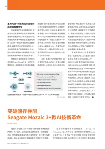 www.eettaiwan.com | 2025%u5e745-6%u670840 INNOVATIONS%u8eca%u7528%u5149%u9054%u3001%u6642%u8108%u548c%u6beb%u7c73%u6ce2%u96f7%u5c04%u611f%u6e2c%u5668%u8f2a%u756a%u767b%u5834%u7121%u8ad6%u8eca%u8f1b%u662f%u5426%u671d%u81ea%u99d5%u8eca%u524d%u9032%uff0c%u5b89%u5168%u6027%u6c38%u9060%u662f%u8eca%u8f1b%u65b0%u529f%u80fd%u7814%u767c%u6642%u6240%u9700%u8003%u616e%u7684%u6700%u512a%u5148%u9806%u4f4d%u3002%u6797%u8a60%u9032%u6307%u51fa%uff0c%u611f%u6e2c%u5668%u5c31%u662f%u7dad%u8b77%u8eca%u8f1b%u5b89%u5168%u6700%u91cd%u8981%u7684%u95dc%u9375%uff0c%u4e14%u6c92%u6709%u4e00%u6b3e%u611f%u6e2c%u5668%u80fd%u5920%u6db5%u84cb%u6574%u8eca%u61c9%u7528%uff0c%u9700%u8981%u4e0d%u540c%u7684%u611f%u6e2c%u5668%u5354%u540c%u5de5%u4f5c%uff0c%u624d%u80fd%u78ba%u4fdd%u8eca%u8f1b%u884c%u99db%u8207%u7528%u8def%u4eba%u5b89%u5168%u3002%u56e0%u6b64%uff0c%u5fb7%u5dde%u5100%u5668%u63a8%u51fa%u9ad8%u901f%u55ae%u6676%u7247%u5149%u9054%u96f7%u5c04%u9a45%u52d5%u5668%u8207%u6beb%u7c73%u6ce2%u96f7%u5c04%u611f%u6e2c%u5668%u3002%u6839%u64da%u5fb7%u5dde%u5100%u5668%u9ad8%u901f%u653e%u5927%u5668%u61c9%u7528%u5de5%u7a0b%u5e2bAnant Sinha%u4ecb%u7d39%uff0c%u76ee%u524d%u5728%u5149%u9054%u61c9%u7528%u4e2d%uff0c%u90fd%u9700%u8981%u96e2%u6563%u5f0f%u7684%u96f7%u5c04%u9a45%u52d5%u900f%u904e%u5404%u7a2e%u95dc%u9375%u534a%u5c0e%u9ad4%u5143%u4ef6%uff0c%u53ef%u5354%u52a9OEM%u958b%u767c%u51fa%u66f4%u53ef%u9760%u8207%u5b89%u5168%u7684ADAS%u3001IVI %uff0c%u4ee5%u53ca%u63a8%u5347%u8eca%u8f1b%u81ea%u4e3b%u6027%u3002%u0009 %u0009%u0009 %u0009 %u0009 %u0009 %u0009 %u0009 %u0009 (%u4f86%u6e90%uff1a%u5fb7%u5dde%u5100%u5668)%u5668%u9a45%u52d5%uff0c%u5fb7%u5dde%u5100%u5668%u65b0%u6b3eLMH13000%u6574%u5408%u5f0f%u5149%u9054%u96f7%u5c04%u9a45%u52d5%u5668%u6574%u5408%u4f4e%u96fb%u58d3%u5dee%u52d5%u8a0a%u865f(LVDS)%u3001%u4e92%u88dc%u5f0f%u91d1%u5c6c%u6c27%u5316%u7269%u534a%u5c0e%u9ad4(CMOS)%u8207%u96fb%u6676%u9ad4-%u96fb%u6676%u9ad4%u908f%u8f2f(TTL)%u63a7%u5236%u8a0a%u865f%uff0c%u76f8%u8f03%u65bc%u96e2%u6563%u5f0f%u96f7%u5c04%u9a45%u52d5%u5668%u65b9%u6848%uff0c%u65b0%u7522%u54c1%u53ef%u63d0%u4f9b800ps%u8d85%u5feb%u901f%u4e0a%u5347%u6642%u9593%uff0c%u6e2c%u8ddd%u8ddd%u96e2%u6bd4%u96e2%u6563%u5f0f%u89e3%u6c7a%u65b9%u6848%u9577%u905430%%u3002%u4e0d%u50c5%u53ef%u4ee5%u63d0%u5347%u5373%u6642%u6c7a%u7b56%u529b%uff0c%u9084%u80fd%u7c21%u5316%u8a2d%u8a08%u6d41%u7a0b%uff0c%u9032%u800c%u964d%u4f4e%u5e73%u574730%%u7684%u7cfb%u7d71%u6210%u672c%uff0c%u4e14%u5c3a%u5bf8%u53ef%u7e2e%u5c0f4%u500d%u3002%u6b64%u5916%uff0c%u70ba%u6eff%u8db3ADAS%u767c%u5c55%u9700%u6c42%uff0c%u5fb7%u5dde%u5100%u5668%u4e5f%u63a8%u51faAWR2944P%u6beb%u7c73%u6ce2%u96f7%u9054%u611f%u6e2c%u5668%uff0c%u4ee5%u63d0%u4f9b%u5148%u9032%u524d%u65b9%u8207%u8f49%u89d2%u7684%u96f7%u9054%u529f%u80fd%u3002%u6797%u8a60%u9032%u8aaa%u660e%uff0c%u65b0%u7684%u6beb%u7c73%u6ce2%u96f7%u9054%u611f%u6e2c%u5668%u662f%u4ee5%u5fb7%u5dde%u5100%u5668AWR2944%u5e73%u53f0%u70ba%u57fa%u790e%uff0c%u5177%u5099%u66f4%u597d%u7684%u8a0a%u865f%u96dc%u8a0a%u6bd4%u3001%u66f4%u5f37%u5927%u7684%u904b%u7b97%u80fd%u529b%u3001%u66f4%u5927%u7684%u8a18%u61b6%u9ad4%u5bb9%u91cf%u7b49%u589e%u5f37%u7279%u6027%u3002%u4e0d%u50c5%u5982%u6b64%uff0c%u65b0%u6beb%u7c73%u6ce2%u96f7%u9054%u611f%u6e2c%u5668%u5167%u5efa%u4eba%u5de5%u667a%u6167(AI)%u786c%u9ad4%u52a0%u901f%u5668%uff0c%u4f7f%u5fae%u63a7%u5236%u5668(MCU)%u548c%u6578%u4f4d%u8a0a%u865f%u8655%u7406%u5668(DSP)%u53ef%u57f7%u884c%u6a5f%u5668%u5b78%u7fd2%uff0c%u76f8%u7576%u9069%u7528%u65bc%u908a%u7de3AI%u61c9%u7528%u3002%u8eca%u8f1b%u53ef%u9760%u6027%u4e5f%u5f71%u97ff%u8457%u6574%u8eca%u5b89 %u5168%uff0c%u70ba %u63d0%u9ad8 A DA S%u53ef%u9760 %u5ea6%uff0c%u5fb7 %u5dde%u5100%u5668%u767c%u4f48%u8eca%u7528BAW%u6642%u8108%u5143%u4ef6%u2014%u2014CDC6C-Q1%u632f%u76ea%u5668%u548cLMK3H0102-Q1%u53caLMK3C0105-Q1%u6642%u8108%u7522%u751f%u5668%u3002%u5fb7%u5dde%u5100%u5668%u6642%u8108%u7522%u54c1%u7d93%u7406Juan Rodriguez%u8868%u793a%uff0cADAS%u8207%u8eca%u8f09%u8cc7%u8a0a%u5a1b%u6a02%u7cfb%u7d71%u5728%u9762%u81e8%u6eab%u5ea6%u6ce2%u52d5%u3001%u632f%u52d5%u548c%u96fb%u78c1%u5e72%u64fe%u6642%uff0c%u5176%u5167%u90e8%u7684%u96fb%u5b50%u5143%u4ef6%u5fc5%u9808%u53ef%u9760%u904b%u4f5c%uff0c%u56e0%u6b64%u6642%u8108%u5143%u4ef6%u80a9%u8ca0%u91cd%u8981%u89d2%u8272%u3002%u65b0%u6b3e%u632f%u76ea%u5668%u8207%u6642%u8108%u5143%u4ef6%u63a1%u7528%u5fb7%u5dde%u5100%u5668%u5177%u509910%u5e74%u4ee5%u4e0a%u7814%u767c%u7d93%u9a57%u7684BAW%u6280%u8853%u6253%u9020%uff0c%u76f8%u8f03%u65bc%u50b3%u7d71%u77f3%u82f1%u5143%u4ef6%uff0c%u9664%u53ef%u9760%u6027%u589e%u52a0%u4e4b%u5916%uff0c%u6545%u969c%u7387%u53ef%u4f4e%u81f3100%u500d%uff0c%u4e14%u7121%u9808%u64d4%u5fc3EMI%u554f%u984c%uff0c%u5931%u6548%u7387(FIT)%u66f4%u662f%u4f4e%u81f30.3%u3002%u7a81%u7834%u5132%u5b58%u6975%u9650Seagate Mozaic 3+%u6380AI%u6280%u8853%u9769%u547dEE Times Taiwan%u96a8%u8457%u4eba%u5de5%u667a%u6167(AI)%u6642%u4ee3%u4f86%u81e8%uff0c%u8cc7%u6599%u88ab%u8b7d%u70ba%u63a8%u52d5%u5275%u65b0%u7684%u71c3%u6599%uff0c%u800c%u300c%u5132%u5b58%u300d%u6b63%u662f%u78ba%u4fdd%u9019%u80a1%u52d5%u529b%u6e90%u6e90%u4e0d%u7d55%u7684%u95dc%u9375%u3002%u7136%u800c%uff0c%u96a8%u8457%u96f2%u7aef%u904b%u7b97%u548cAI%u61c9%u7528%u84ec%u52c3%u767c%u5c55%uff0c%u8cc7%u6599%u91cf%u5448%u6307%u6578%u7d1a%u6210%u9577%uff0c%u50b3%u7d71%u5132%u5b58%u6280%u8853%u6b63%u9762%u81e8%u5bb9%u91cf%u8207%u71b1%u7a69%u5b9a%u6027%u7b49%u74f6%u9838%u3002%u5168 %u7403 %u8cc7 %u6599 %u5132 %u5b58 %u6280 %u8853 %u9818 %u5c0e %u5ee0 %u5546 %u2014%u2014 S e a g a t e Technology%u6295%u5165%u591a%u5e74%u7814%u767c%uff0c%u6210%u529f%u958b%u767c%u7a81%u7834%u6027%u7684Mozaic 3+%u786c%u789f%u5e73%u53f0%uff0c%u4e0d%u50c5%u514b%u670d%u4e86%u71b1%u7a69%u5b9a%u6311%u6230%uff0c%u540c%u6642%u63d0%u4f9b%u9818%u5148%u696d%u754c%u7684%u55ae%u789f%u5132%u5b58%u5bb9%u91cf%uff0c%u70baAI%u8cc7%u6599%u4e2d%u5fc3%u8207%u4f01%u696d%u7528%u6236%u5be6%u73fe%u517c%u5177