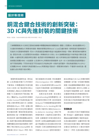 www.eettaiwan.com | 2025%u5e745-6%u670844 DESIGN CORNER%u9285%u6df7%u5408%u9375%u5408%u6280%u8853%u7684%u5275%u65b0%u7a81%u7834%uff1a3D IC%u8207%u5148%u9032%u5c01%u88dd%u7684%u95dc%u9375%u6280%u8853%u9673%u51a0%u80fd%u3001%u5289%u6631%u8ad6%uff0c%u4f5c%u8005%u4f9d%u5e8f%u70ba%u967d%u660e%u4ea4%u901a%u5927%u5b78%u96fb%u5b50%u7814%u7a76%u6240%u6559%u6388%u3001%u535a%u58eb%u751f%u4e09%u7dad%u7a4d%u9ad4%u96fb%u8def(3D IC)%u6280%u8853%u6b63%u9010%u6f38%u6210%u70ba%u63a8%u52d5%u534a%u5c0e%u9ad4%u7522%u696d%u5275%u65b0%u7684%u95dc%u9375%u6280%u8853%uff0c%u96a8%u8457%u4eba%u5de5%u667a%u6167(AI)%u3001%u9ad8%u6548%u80fd%u904b%u7b97(HPC)%u30015G%u901a%u8a0a%u548c%u7269%u806f%u7db2(IoT)%u7b49%u61c9%u7528%u7684%u767c%u5c55%uff0c%u50b3%u7d71%u7684%u6469%u723e%u5b9a%u5f8b(Moore%u2019s Law)%u5df2%u8da8%u65bc%u98fd%u548c%uff0c%u4f7f%u5f97%u900f%u904e%u5e73%u9762%u5fae%u7e2e%u63d0%u5347%u6027%u80fd%u7684%u65b9%u5f0f%u9762%u81e8%u7269%u7406%u6975%u9650%uff0c%u800c3D IC%u5247%u900f%u904e%u5782%u76f4%u5806%u758a%u591a%u500b%u6676%u7247%u6216%u6676%u5713%u4f86%u7a81%u7834%u9019%u4e00%u9650%u5236%uff0c%u5be6%u73fe%u66f4%u9ad8%u7684%u904b%u7b97%u6548%u80fd%u3001%u66f4%u4f4e%u7684%u529f%u8017%uff0c%u4ee5%u53ca%u66f4%u7dca%u5bc6%u7684%u7cfb%u7d71%u6574%u5408%u3002%u8207%u50b3%u7d71%u76842D IC%u76f8%u6bd4%uff0c3D IC%u80fd%u986f%u8457%u7e2e%u77ed%u6676%u7247%u5167%u90e8%u8207%u6676%u7247%u9593%u7684%u4e92%u9023%u8ddd%u96e2%uff0c%u5927%u5e45%u964d%u4f4e%u5bc4%u751f%u96fb%u963b%u8207%u5bc4%u751f%u96fb%u5bb9%uff0c%u9032%u800c%u63d0%u5347%u8a0a%u865f%u50b3%u8f38%u901f%u5ea6%u3001%u6e1b%u5c11%u529f%u7387%u640d%u8017%u4e26%u63d0%u5347%u6574%u9ad4%u983b%u5bec%uff0c%u4f7f%u5176%u6210%u70ba%u9ad8%u983b%u5bec%u8a18%u61b6%u9ad4(HBM)%u3001AI%u52a0%u901f%u5668%uff0c%u4ee5%u53ca%u8cc7%u6599%u4e2d%u5fc3%u7b49%u61c9%u7528%u7684%u7406%u60f3%u9078%u64c7%u3002%u6b64%u5916%uff0c3D IC%u6280%u8853%u9084%u80fd%u4fc3%u9032%u7570%u8cea%u6574%u5408%uff0c%u4f7f%u4e0d%u540c%u88fd%u7a0b%u7bc0%u9ede%u3001%u4e0d%u540c%u6750%u6599%u751a%u81f3%u4e0d%u540c%u529f%u80fd%u7684%u5143%u4ef6%u80fd%u5920%u5728%u55ae%u4e00%u5c01%u88dd%u5167%u5354%u540c%u904b%u4f5c%uff0c%u4f8b%u5982%u5c07%u8655%u7406%u5668(CPU/GPU)%u3001%u8a18%u61b6%u9ad4(DRAM)%u3001%u5c04%u983b(RF)%u8207%u611f%u6e2c%u5668(Sensor)%u7b49%u7570%u8cea%u6676%u7247%u6574%u5408%u65bc%u4e00%u500b%u7dca%u6e4a%u7684%u5c01%u88dd%u5167%uff0c%u4e0d%u50c5%u63d0%u5347%u7cfb%u7d71%u6027%u80fd%uff0c%u9084%u80fd%u512a%u5316%u6210%u672c%u8207%u63d0%u5347%u8a2d%u8a08%u5f48%u6027%u3002%u8a2d%u8a08%u65b0%u6280%u8853%u96a8%u8457%u5c0d%u66f4%u9ad8%u904b%u7b97%u6027%u80fd%u3001%u66f4%u4f4e%u5ef6%u9072%uff0c%u4ee5%u53ca%u66f4%u9ad8%u80fd%u6548%u96fb%u5b50%u5143%u4ef6%u7684%u9700%u6c42%u4e0d%u65b7%u589e%u9577%uff0c%u534a%u5c0e%u9ad4%u7522%u696d%u6b63%u5feb%u901f%u5730%u9081%u54113D IC%u6280%u8853%u3002%u70ba%u4e86%u6eff%u8db3%u66f4%u4f4e%u529f%u8017%u4ee5%u53ca%u66f4%u9ad8%u8f38%u5165/%u8f38%u51fa(I/O)%u5bc6%u5ea6%u7684%u9700%u6c42%uff0c%u63a8%u52d5%u4e86IC%u4e92%u9023%u6280%u8853%u7684%u4e0d%u65b7%u6f14%u9032%u3002%u50b3%u7d71%u4e0a%uff0c%u8986%u6676(Flip-chip)%u6280%u8853%u5229%u7528%u932b%u7403(Solder bumps)%u4f5c%u70ba%u9ad8%u6548%u80fd%u6676%u7247%u8207%u5c01%u88dd%u4e4b%u9593%u7684%u6a19%u6e96%u4e92%u9023%u65b9%u5f0f%uff0c%u5176%u9593%u8ddd%u901a%u5e38%u8d85%u904e100%u00b5m%u3002%u7136%u800c%uff0c%u9019%u7a2e%u5927%u9593%u8ddd%u7684%u932b%u7403%u4e92%u9023%u65b9%u5f0f%u5b58%u5728%u5bc4%u751f%u96fb%u963b%u8207%u5bc4%u751f%u96fb%u5bb9%u6548%u61c9%uff0c%u5c0e%u81f4%u8a0a%u865f%u8870%u6e1b%u8207%u80fd%u91cf%u6d88%u8017%u589e%u52a0%uff0c%u9032%u4e00%u6b65%u5f71%u97ff%u8a0a%u865f%u5b8c%u6574%u6027%u8207%u529f%u8017%u6548%u7387%uff0c%u6700%u7d42%u9650%u5236%u6574%u9ad4%u7cfb%u7d71%u7684%u6027%u80fd%u3002%u70ba%u63d0%u5347%u6574%u5408%u5bc6%u5ea6%u4e26%u5be6%u73fe%u9ad8%u983b%u5bec%u8a18%u61b6%u9ad4%u5806%u758a%u53ca%u5176%u4ed6%u5148%u9032%u5c01%u88dd%u61c9%u7528%uff0c%u696d%u754c%u8f49%u5411%u4e86%u5fae%u51f8%u584a(Microbump)%u6280%u8853%uff0c%u5176%u9593%u8ddd%u7e2e%u5c0f%u81f310~50%u00b5m%u3002%u7136%u800c%uff0c%u5fae%u51f8%u584a%u4ecd%u9762%u81e8%u6839%u672c%u6027%u6311%u6230%uff0c%u4f8b%u5982%u96fb%u9077%u79fb(Electromigration%uff0cEM)%u3001%u63a5%u89f8%u96fb%u963b%u589e%u52a0%uff0c%u4ee5%u53ca%u7531%u5e95%u90e8%u586b%u5145%u81a0(Underfill)%u5f15%u8d77%u7684%u53ef%u9760%u5ea6%u554f%u984c%uff0c%u9019%u4e9b%u554f%u984c%u963b%u7919%u4e86%u4e92%u9023%u6280%u8853%u7684%u9032%u4e00%u6b65%u5fae%u7e2e%u3002%u70ba %u89e3 %u6c7a %u9019 %u4e9b %u6311 %u6230%uff0c%u6df7 %u5408 %u9375 %u5408(Hybrid bonding)%u6280%u8853%u61c9%u904b%u800c%u751f%uff0c%u6210%u70ba%u7a81%u7834%u6027%u7684%u89e3%u6c7a%u65b9%u6848%u3002%u8a72%u6280%u8853%u80fd%u5920%u572810%u00b5m%u4ee5%u4e0b%u7684%u9593%u8ddd%u5be6%u73fe%u76f4%u63a5%u7684%u9285%u5c0d%u9285%u9375%u5408(Cu-to-Cu bonding)%u8207%u4ecb%u96fb%u6750%u6599%u5c0d%u4ecb%u96fb%u6750%u6599%u4e4b%u9375%u5408(Dielectricto-dielectric bonding)%uff0c%u6d88%u9664%u4e86%u5c0d%u710a%u932b%u7684%u9700%u6c42%uff0c%u5927%u5e45%u964d%u4f4e%u4e92%u9023%u7684%u5bc4%u751f%u6548%u61c9%uff0c%u4e26%u986f%u8457%u63d0%u5347%u8a0a%u865f%u5b8c%u6574%u6027%u8207%u529f%u8017%u6548%u7387%u3002%u8fd1%u671f%u5728%u6676%u5713%u5c0d%u6676%u5713(W2W)%u8207%u6676%u7247%u5c0d%u6676%u5713(D2W)%u6df7%u5408%u9375%u5408%u6280%u8853%u65b9%u9762%u7684%u9032%u5c55%uff0c%u5df2%u5c07%u4e92%u9023%u9593%u8ddd%u63a8%u9032%u81f3%u6b21%u5fae%u7c73%u7d1a(Sub-micron)%uff0c%u9019%u5c0d%u65bc%u9ad8%u5bc6%u5ea6%u4e09%u7dad%u7cfb%u7d71%u55ae%u6676%u7247(3D-SoC)%u67b6%u69cb%u7684%u5be6%u73fe%u81f3%u95dc%u91cd%u8981%uff0c%u4e26%u53ef%u9032%u4e00%u6b65%u62d3%u5c55%u65bc%u9700%u8981%u9ad8%u983b%u5bec%u3001%u4f4e%u5ef6%u9072%u6578%u64da%u50b3%u8f38%u7684%u61c9%u7528%uff0c%u5305%u62ec%u4eba%u5de5%u667a%u6167%u52a0%u901f%u5668%u3001%u8cc7%u6599%u4e2d%u5fc3%u67b6%u69cb%uff0c%u4ee5%u53ca%u5148%u9032%u7684%u884c%u52d5%u8655%u7406%u5668%u3002%u6b64%u5916%uff0c%u6df7%u5408%u9375%u5408%u512a%u7570%u7684%u71b1%u7a69%u5b9a%u6027%u8207%u6a5f%u68b0%u7a69%u5b9a