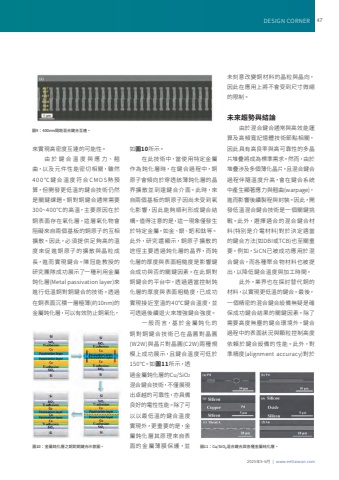 2025%u5e745-6%u6708 | www.eettaiwan.comDESIGN CORNER 47%u57169%uff1a400nm%u9593%u8ddd%u6df7%u5408%u9375%u5408%u4e92%u9023%u3002%u4f86%u5be6%u73fe%u9ad8%u5bc6%u5ea6%u4e92%u9023%u7684%u53ef%u80fd%u6027%u3002%u7531 %u65bc %u9375 %u5408 %u6eab %u5ea6 %u8207 %u61c9 %u529b%u3001%u7ff9%u66f2%uff0c%u4ee5%u53ca%u5143%u4ef6%u6027%u80fd%u5bc6%u5207%u76f8%u95dc%uff0c%u96d6%u7136400%u2103%u9375%u5408%u6eab%u5ea6%u7b26%u5408CMOS%u71b1%u9810%u7b97%uff0c%u4f46%u958b%u767c%u66f4%u4f4e%u6eab%u7684%u9375%u5408%u6280%u8853%u4ecd%u7136%u662f%u95dc%u9375%u8ab2%u984c%u3002%u9285%u5c0d%u9285%u9375%u5408%u901a%u5e38%u9700%u8981300~400%u2103%u7684%u9ad8%u6eab%uff0c%u4e3b%u8981%u539f%u56e0%u5728%u65bc%u9285%u8868%u9762%u5b58%u5728%u6c27%u5316%u5c64%uff0c%u9019%u5c64%u6c27%u5316%u7269%u6703%u963b%u7919%u4f86%u81ea%u5169%u500b%u57fa%u677f%u7684%u9285%u539f%u5b50%u7684%u4e92%u76f8%u64f4%u6563%u3002%u56e0%u6b64%uff0c%u5fc5%u9808%u63d0%u4f9b%u8db3%u5920%u9ad8%u7684%u6eab%u5ea6%u4f86%u4fc3%u9032%u9285%u539f%u5b50%u7684%u64f4%u6563%u8207%u6676%u7c92%u6210%u9577%uff0c%u9032%u800c%u5be6%u73fe%u9375%u5408%u3002%u9673%u51a0%u80fd%u6559%u6388%u7684%u7814%u7a76%u5718%u968a%u6210%u529f%u5c55%u793a%u4e86%u4e00%u7a2e%u5229%u7528%u91d1%u5c6c%u920d%u5316%u5c64(Metal passivation layer)%u4f86%u9032%u884c%u4f4e%u6eab%u9285%u5c0d%u9285%u9375%u5408%u7684%u6280%u8853%u3002%u900f%u904e%u5728%u9285%u8868%u9762%u6c89%u7a4d%u4e00%u5c64%u6975%u8584(%u7d0410nm)%u7684%u91d1%u5c6c%u920d%u5316%u5c64%uff0c%u53ef%u4ee5%u6709%u6548%u9632%u6b62%u9285%u6c27%u5316%uff0c%u5982%u571610%u6240%u793a%u3002%u5728%u6b64%u6280%u8853%u4e2d%uff0c%u7576%u4f7f%u7528%u7279%u5b9a%u91d1%u5c6c%u4f5c%u70ba%u920d%u5316%u5c64%u6642%uff0c%u5728%u9375%u5408%u904e%u7a0b%u4e2d%uff0c%u9285%u539f%u5b50%u6703%u50be%u5411%u65bc%u7a7f%u900f%u8a72%u8584%u920d%u5316%u5c64%u7684%u6676%u754c%u64f4%u6563%u4e26%u5230%u9054%u9375%u5408%u4ecb%u9762%u3002%u6b64%u6642%uff0c%u4f86%u81ea%u5169%u500b%u57fa%u677f%u7684%u9285%u539f%u5b50%u56e0%u5c1a%u672a%u53d7%u5230%u6c27%u5316%u5f71%u97ff%uff0c%u56e0%u6b64%u80fd%u5920%u9806%u5229%u5f62%u6210%u9375%u5408%u7d50%u69cb%u3002%u503c%u5f97%u6ce8%u610f%u7684%u662f%uff0c%u9019%u4e00%u73fe%u8c61%u50c5%u767c%u751f%u65bc%u7279%u5b9a%u91d1%u5c6c%uff0c%u5982%u91d1%u3001%u9280%u3001%u9200%u548c%u9226%u7b49%u3002%u6b64%u5916%uff0c%u7814%u7a76%u9084%u986f%u793a%uff0c%u9285%u539f%u5b50%u64f4%u6563%u7684%u9014%u5f91%u4e3b%u8981%u900f%u904e%u920d%u5316%u5c64%u7684%u6676%u754c%uff0c%u800c%u920d%u5316%u5c64%u7684%u539a%u5ea6%u8207%u8868%u9762%u7c97%u7cd9%u5ea6%u662f%u5f71%u97ff%u9375%u5408%u6210%u529f%u8207%u5426%u7684%u95dc%u9375%u56e0%u7d20%u3002%u5728%u6b64%u9285%u5c0d%u9285%u9375%u5408%u7684%u5e73%u53f0%u4e2d%uff0c%u900f%u904e%u9069%u7576%u63a7%u5236%u920d%u5316%u5c64%u7684%u539a%u5ea6%u8207%u8868%u9762%u7c97%u7cd9%u5ea6%uff0c%u5df2%u6210%u529f%u5be6%u73fe%u63a5%u8fd1%u5ba4%u6eab%u768440%u2103%u9375%u5408%u6eab%u5ea6%uff0c%u4e26%u53ef%u900f%u904e%u5f8c%u7e8c%u9000%u706b%u4f86%u589e%u5f37%u9375%u5408%u5f37%u5ea6%u3002%u4e00 %u822c %u800c %u8a00%uff0c%u57fa %u65bc %u91d1 %u5c6c %u920d %u5316 %u7684%u9285%u5c0d%u9285%u9375%u5408%u6280%u8853%u5df2%u5728%u6676%u5713%u5c0d%u6676%u5713(W2W)%u8207%u6676%u7247%u5c0d%u6676%u5713(C2W)%u5169%u7a2e%u898f%u6a21%u4e0a%u6210%u529f%u5c55%u793a%uff0c%u4e14%u9375%u5408%u6eab%u5ea6%u53ef%u4f4e%u65bc150%u2103%u3002%u5982%u571611%u6240%u793a%uff0c%u900f%u904e%u91d1%u5c6c%u920d%u5316%u5c64%u7684Cu/SiO2%u6df7%u5408%u9375%u5408%u6280%u8853%uff0c%u4e0d%u50c5%u5c55%u73fe%u51fa%u5353%u8d8a%u7684%u53ef%u9760%u6027%uff0c%u4ea6%u5177%u5099%u826f%u597d%u7684%u96fb%u6027%u6027%u80fd%u3002%u9664%u4e86%u53ef%u4ee5%u4ee5%u6700%u4f4e%u6eab%u7684%u9375%u5408%u6eab%u5ea6%u5be6%u73fe%u5916%uff0c%u66f4%u91cd%u8981%u7684%u662f%uff0c%u91d1%u5c6c%u920d%u5316%u5c64%u5176%u539f%u7406%u4f86%u81ea%u8868%u9762%u7684 %u91d1 %u5c6c%u8584 %u819c%u4fdd %u8b77%uff0c%u4e26%u672a%u523b%u610f%u6539%u8b8a%u9285%u6750%u6599%u7684%u6676%u7c92%u8207%u6676%u5411%uff0c%u56e0%u6b64%u5728%u61c9%u7528%u4e0a%u5c07%u4e0d%u6703%u53d7%u5230%u5c3a%u5bf8%u5fae%u7e2e%u7684%u9650%u5236%u3002%u672a%u4f86%u8da8%u52e2%u8207%u7d50%u8ad6%u7531%u65bc%u6df7%u5408%u9375%u5408%u901a%u5e38%u8207%u9ad8%u6548%u80fd%u904b%u7b97%u53ca%u9ad8%u983b%u5bec%u8a18%u61b6%u9ad4%u6280%u8853%u7bc0%u9ede%u76f8%u95dc%uff0c%u56e0%u6b64%u5177%u6709%u9ad8%u826f%u7387%u8207%u9ad8%u53ef%u9760%u6027%u7684%u591a%u6676%u7247%u5806%u758a%u5c07%u6210%u70ba%u6a19%u6e96%u9700%u6c42%u3002%u7136%u800c%uff0c%u7531%u65bc%u5806%u758a%u6d89%u53ca%u591a%u500b%u8584%u5316%u6676%u7247%uff0c%u4e14%u6df7%u5408%u9375%u5408%u904e%u7a0b%u4f34%u96a8%u6eab%u5ea6%u5347%u9ad8%uff0c%u6703%u5728%u9375%u5408%u7cfb%u7d71%u4e2d%u7522%u751f%u986f%u8457%u61c9%u529b%u8207%u7ff9%u66f2(warpage)%uff0c%u9032%u800c%u5f71%u97ff%u5f8c%u7e8c%u88fd%u7a0b%u8207%u5c01%u88dd%u3002%u56e0%u6b64%uff0c%u958b%u767c%u4f4e%u6eab%u6df7%u5408%u9375%u5408%u6280%u8853%u662f%u4e00%u500b%u95dc%u9375%u6311%u6230%u3002%u6b64%u5916%uff0c%u9078%u64c7%u9069%u5408%u7684%u6df7%u5408%u9375%u5408%u6750%u6599(%u7279%u5225%u662f%u4ecb%u96fb%u6750%u6599)%u5c0d%u65bc%u6c7a%u5b9a%u9069%u7576%u7684%u9375%u5408%u65b9%u6cd5(%u5982DBI%u6216TCB)%u4e5f%u81f3%u95dc%u91cd%u8981%u3002%u4f8b%u5982%uff0cSiCN%u5df2%u88ab%u6210%u529f%u61c9%u7528%u65bc%u6df7%u5408%u9375%u5408%uff0c%u800c%u5404%u7a2e%u805a%u5408%u7269%u6750%u6599%u4e5f%u88ab%u63d0%u51fa%uff0c%u4ee5%u964d%u4f4e%u9375%u5408%u6eab%u5ea6%u8207%u52a0%u5de5%u6642%u9593%u3002%u6b64%u5916%uff0c%u696d%u754c%u4e5f%u5728%u63a2%u8a0e%u66ff%u4ee3%u9285%u7684%u6750%u6599%uff0c%u4ee5%u5be6%u73fe%u66f4%u4f4e%u6eab%u7684%u9375%u5408%u3002%u6700%u5f8c%uff0c%u4e00%u500b%u7cbe%u5bc6%u7684%u6df7%u5408%u9375%u5408%u8a2d%u5099%u7121%u7591%u662f%u78ba%u4fdd%u6210%u529f%u9375%u5408%u7d50%u679c%u7684%u95dc%u9375%u56e0%u7d20%u3002%u9664%u4e86%u9700%u8981%u9ad8%u5ea6%u7121%u5875%u7684%u9375%u5408%u74b0%u5883%u5916%uff0c%u9375%u5408%u904e%u7a0b%u4e2d%u7684%u8868%u9762%u72c0%u6cc1%u8207%u9846%u7c92%u63a7%u5236%u9ad8%u5ea6%u4f9d%u8cf4%u65bc%u9375%u5408%u8a2d%u50