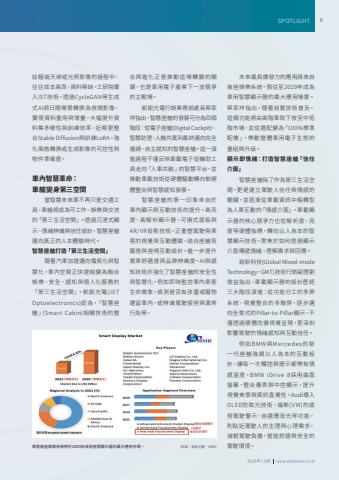 2025%u5e747-8%u6708 | www.eettaiwan.com92025%u5e747-8%u6708 | www.eettaiwan.comSPOTLIGHT 9%u8a3b%u6975%u7aef%u5929%u5019%u6216%u5149%u7167%u5f71%u50cf%u7684%u904e%u7a0b%u4e2d%uff0c%u5f80%u5f80%u6210%u672c%u9ad8%u6602%u3001%u8cc7%u6599%u7a00%u7f3a%u3002%u5de5%u7814%u9662%u5c0e%u5165IST%u6280%u8853%uff0c%u900f%u904eCycleGAN%u7b49%u751f%u6210%u5f0fAI%u5c07%u65e5%u9593%u5834%u666f%u8f49%u63db%u70ba%u591c%u9593%u5f71%u50cf%uff0c%u5be6%u73fe%u8cc7%u6599%u91cd%u7528%u8207%u589e%u91cf%uff0c%u5927%u5e45%u63d0%u5347%u8cc7%u6599%u96c6%u591a%u6a23%u6027%u8207%u8a13%u7df4%u6548%u7387%uff0c%u8fd1%u671f%u66f4%u6574%u5408Stable Diffusion%u8207%u8a13%u7df4LoRA%uff0c%u5f37%u5316%u98a8%u683c%u8f49%u63db%u6216%u751f%u6210%u5f71%u50cf%u7684%u53ef%u63a7%u6027%u8207%u7269%u4ef6%u6e96%u78ba%u5ea6%u3002%u8eca%u5167%u667a%u6167%u9769%u547d%uff1a%u8eca%u8259%u8b8a%u8eab%u7b2c%u4e09%u7a7a%u9593%u7576%u667a%u6167%u672a%u4f86%u8eca%u4e0d%u518d%u53ea%u662f%u4ea4%u901a%u5de5%u5177%uff0c%u8eca%u8259%u5c07%u6210%u70ba%u53ef%u5de5%u4f5c%u3001%u5a1b%u6a02%u8207%u4ea4%u6d41%u7684%u300c%u7b2c%u4e09%u751f%u6d3b%u7a7a%u9593%u300d%u3002%u900f%u904e%u6c89%u6d78%u5f0f%u986f%u793a%u3001%u60c5%u7dd2%u8fa8%u8b58%u8207%u4fe1%u4efb%u8a2d%u8a08%uff0c%u667a%u6167%u5ea7%u8259%u9081%u5411%u771f%u6b63%u7684%u4eba%u672c%u9ad4%u9a57%u6642%u4ee3%u3002%u667a%u6167%u5ea7%u8259%u6253%u9020%u300c%u7b2c%u4e09%u751f%u6d3b%u7a7a%u9593%u300d%u96a8%u8457%u6c7d%u8eca%u52a0%u901f%u9081%u5411%u96fb%u6c23%u5316%u8207%u667a%u6167%u5316%uff0c%u8eca%u5167%u7a7a%u9593%u6b63%u5feb%u901f%u86fb%u8b8a%u70ba%u878d%u5408%u5a1b%u6a02%u3001%u5b89%u5168%u3001%u611f%u77e5%u8207%u500b%u4eba%u5316%u670d%u52d9%u7684%u300c%u7b2c%u4e09%u751f%u6d3b%u7a7a%u9593%u300d%u3002%u51f1%u92b3%u5149%u96fb(JET Optoelectronics)%u8a8d%u70ba%uff0c%u300c%u667a%u6167%u5ea7%u8259%u300d(Smar t Cabin)%u76f8%u95dc%u6280%u8853%u7684%u6574%u5408%u8207%u9032%u5316%u6b63%u662f%u63a8%u52d5%u9019%u5834%u8f49%u8b8a%u7684%u95dc%u9375%uff0c%u4e5f%u662f%u8eca%u7528%u96fb%u5b50%u7522%u696d%u4e0b%u4e00%u6ce2%u7af6%u722d%u7684%u4e3b%u6230%u5834%u3002%u51f1%u92b3%u5149%u96fb%u884c%u92b7%u696d%u52d9%u90e8%u8655%u9577%u8521%u5bb6%u7965%u6307%u51fa%uff0c%u667a%u6167%u5ea7%u8259%u7684%u767c%u5c55%u53ef%u5206%u70ba%u56db%u500b%u968e%u6bb5%uff1a%u5f9e%u96fb%u5b50%u5ea7%u8259(Digital Cockpit)%u3001%u667a%u6167%u52a9%u7406%u3001%u4eba%u6a5f%u5171%u99d5%u5230%u6700%u7d42%u9081%u5411%u5b8c%u5168%u9023%u7db2%u3001%u81ea%u4e3b%u611f%u77e5%u7684%u667a%u6167%u5ea7%u8259%u3002%u9019%u4e00%u6f14%u9032%u904e%u7a0b%u4e0d%u50c5%u53cd%u6620%u8eca%u8f09%u96fb%u5b50%u5f9e%u8f14%u52a9%u5de5%u5177%u8d70%u5411%u300c%u4eba%u8eca%u5171%u878d%u300d%u7684%u667a%u6167%u5e73%u53f0%uff0c%u4e26%u63a8%u52d5%u8eca%u8f09%u6280%u8853%u5f9e%u786c%u9ad4%u9a45%u52d5%u8f49%u5411%u8edf%u786c%u9ad4%u6574%u5408%u8207%u667a%u6167%u611f%u77e5%u767c%u5c55%u3002%u667a%u6167%u5ea7%u8259%u7684%u7b2c%u4e00%u5370%u8c61%u4f86%u81ea%u65bc%u8eca%u5167%u986f%u793a%u8207%u4e92%u52d5%u6280%u8853%u7684%u63d0%u5347%u3002%u9ad8%u4eae%u5ea6%u3001%u9ad8%u89e3%u6790%u986f%u793a%u5668%u3001%u53ef%u6493%u5f0f%u9762%u677f%u8207AR/VR%u6295%u5f71%u6280%u8853%uff0c%u6b63%u91cd%u5851%u99d5%u99db%u8207%u4e58%u5ba2%u7684%u8996%u89ba%u8207%u4e92%u52d5%u9ad4%u9a57%uff0c%u7d50%u5408%u5ea7%u8259%u6c1b%u570d%u71c8%u8207%u5ea7%u6905%u4e92%u52d5%u8a2d%u8a08%uff0c%u9032%u4e00%u6b65%u63d0%u5347%u99d5%u4e58%u8212%u9069%u5ea6%u8207%u54c1%u724c%u8fa8%u8b58%u5ea6%u3002AI%u8207%u611f%u77e5%u6280%u8853%u4ea6%u5f37%u5316%u4e86%u667a%u6167%u5ea7%u8259%u7684%u5b89%u5168%u6027%u8207%u667a%u6167%u5316%uff0c%u4f8b%u5982%u5373%u6642%u76e3%u63a7%u8eca%u5167%u4e58%u5ba2%u751f%u547d%u5fb5%u8c61%uff0c%u5075%u6e2c%u662f%u5426%u6709%u5b69%u7ae5%u6216%u5bf5%u7269%u907a%u7559%u8eca%u5167%uff0c%u6216%u8fa8%u8b58%u99d5%u99db%u75b2%u52de%u8207%u7570%u5e38%u884c%u70ba%u7b49%u3002%u4e58%u5ba2%u5f8c%u5ea7%u5a1b%u6a02%u7cfb%u7d71%u5c07%u65bc2029%u5e74%u6210%u70ba%u667a%u6167%u986f%u793a%u5668%u7684%u6700%u5927%u61c9%u7528%u5e02%u5834%u3002%u0009 %u0009 %u0009%u0009%u0009%u0009%u0009(%u4f86%u6e90%uff1a%u51f1%u92b3%u5149%u96fb%u3001MMR)%u672a%u4f86%u6700%u5177%u7206%u767c%u529b%u7684%u61c9%u7528%u5c07%u4f86%u81ea%u5f8c%u5ea7%u5a1b%u6a02%u7cfb%u7d71%uff0c%u9810%u4f30%u81f32029%u5e74%u6210%u70ba%u8eca%u7528%u667a%u6167%u986f%u793a%u5668%u7684%u6700%u5927%u61c9%u7528%u5834%u666f%u3002%u8521%u5bb6%u7965%u6307%u51fa%uff0c%u96a8%u8457%u81ea%u99d5%u6280%u8853%u666e%u53ca%uff0c%u9019%u985e%u529f%u80fd%u5c07%u7531%u9ad8%u968e%u8eca%u6b3e%u4e0b%u653e%u81f3%u4e2d%u4f4e%u968e%u5e02%u5834%uff0c%u4e26%u5f9e%u9078%u914d%u8b8a%u70ba%u300c100%%u6a19%u6e96%u914d%u5099%u300d%uff0c%u5e36%u52d5%u6574%u9ad4%u8eca%u7528%u96fb%u5b50%u751f%u614b%u7684%u91cd%u7d44%u8207%u5347%u7d1a%u3002%u986f%u793a%u5373%u60c5%u7dd2%uff1a%u6253%u9020%u667a%u6167%u5ea7%u8259%u300c%u4fe1%u4efb%u4ecb%u9762%u300d%u667a%u6167%u5ea7%u8259%u9664%u4e86%u4f5c%u70ba%u7b2c%u4e09%u751f%u6d3b%u7a7a%u9593%uff0c%u66f4%u662f%u5efa%u7acb%u99d5%u99db%u4eba%u4fe1%u4efb%u8207%u60c5%u611f%u7684%u95dc%u9375%uff0c%u4e26%u9010%u6f38%u5f9e%u8eca%u8f09%u8cc7%u8a0a%u4e2d%u6a1e%u8f49%u578b%u70ba%u4eba%u8eca%u4e92%u52d5%u7684%u300c%u60c5%u611f%u4ecb%u9762%u300d%u3002%u8eca%u8f09%u986f%u793a%u5668%u7684%u6838%u5fc3%u7af6%u722d%u529b%u4e5f%u5f9e%u89e3%u6790%u5ea6%u3001%u4eae%u5ea6%u7b49%u786c%u9ad4%u6307%u6a19%uff0c%u8f49%u5411%u4ee5%u4eba%u70ba%u672c%u7684%u667a%u6167%u986f%u793a%u6280%u8853%uff0c%u805a%u7126%u65bc%u5982%u4f55%u900f%u904e%u986f%u793a%u4ecb%u9762%u50b3%u905e%u60c5%u7dd2%u3001%u7406%u89e3%u9700%u6c42%u8207%u56de%u61c9%u3002%u81f4%u65b0%u79d1%u6280(Global Mixed-mode Technology%uff0cGMT)%u6280%u8853%u884c%u92b7%u526f%u7406%u5289%u4fca%u76ca%u6307%u51fa%uff0c%u8eca%u8f09%u986f%u793a%u5668%u7684%u8a2d%u8a08%u6b77%u7d93%u4e09%u5927%u968e%u6bb5%u6f14%u9032%uff1a%u5f9e%u529f%u80fd%u5206%u5de5%u7684%u591a%u5c4f%u7cfb%u7d71%u3001%u8996%u89ba%u6574%u5408%u7684%u591a%u806f%u5c4f%uff0c%u9010%u6b65%u9081%u5411%u5168%u666f%u5f0f%u7684Pillar-to-Pillar%u986f%u793a%uff0c%u4e0d%u50c5%u900f%u