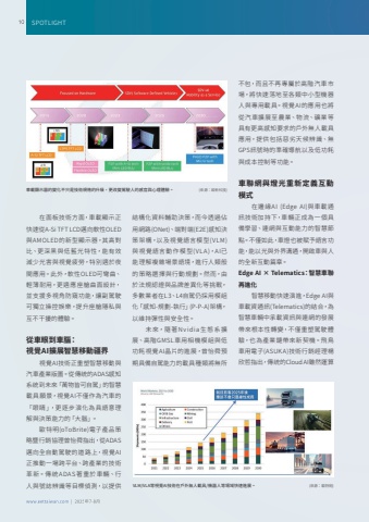 www.eettaiwan.com | 2025%u5e747-8%u670810| 2025%u5e747-8%u6708SPOTLIGHT%u5728%u9762%u677f%u6280%u8853%u65b9%u9762%uff0c%u8eca%u8f09%u986f%u793a%u6b63%u5feb%u901f%u5f9eA-Si TFT LCD%u9081%u5411%u8edf%u6027OLED%u8207AMOLED%u7684%u65b0%u578b%u986f%u793a%u5668%uff0c%u5176%u9ad8%u5c0d%u6bd4%u3001%u66f4%u6df1%u9ed1%u8207%u4f4e%u85cd%u5149%u7279%u6027%uff0c%u80fd%u6709%u6548%u6e1b%u5c11%u5149%u5bb3%u8207%u8996%u89ba%u75b2%u52de%uff0c%u7279%u5225%u9069%u65bc%u591c%u9593%u61c9%u7528%u3002%u6b64%u5916%uff0c%u8edf%u6027OLED%u53ef%u5f4e%u66f2%u3001%u8f15%u8584%u8010%u7528%uff0c%u66f4%u9069%u61c9%u5ea7%u8259%u66f2%u9762%u8a2d%u8a08%uff0c%u4e26%u652f%u63f4%u591a%u8996%u89d2%u9632%u7aba%u529f%u80fd%uff0c%u8b93%u526f%u99d5%u99db%u53ef%u7368%u7acb%u64cd%u63a7%u5a1b%u6a02%uff0c%u63d0%u5347%u5ea7%u8259%u96b1%u79c1%u8207%u4e92%u4e0d%u5e72%u64fe%u7684%u9ad4%u9a57%u3002%u5f9e%u8eca%u773c%u5230%u8eca%u8166%uff1a%u8996%u89baAI%u64f4%u5c55%u667a%u6167%u79fb%u52d5%u7586%u754c%u8996%u89baAI%u6280%u8853%u6b63%u91cd%u5851%u667a%u6167%u79fb%u52d5%u8207%u6c7d%u8eca%u7522%u696d%u7248%u5716%u3002%u5f9e%u50b3%u7d71%u7684ADAS%u611f%u77e5%u7cfb%u7d71%u5230%u672a%u4f86%u300c%u842c%u7269%u7686%u53ef%u81ea%u99d5%u300d%u7684%u667a%u6167%u8f09%u5177%u9858%u666f%uff0c%u8996%u89baAI%u4e0d%u50c5%u4f5c%u70ba%u6c7d%u8eca%u7684%u300c%u773c%u775b%u300d%uff0c%u66f4%u9010%u6b65%u6f14%u5316%u70ba%u5177%u8a9e%u610f%u7406%u89e3%u8207%u6c7a%u7b56%u80fd%u529b%u7684%u300c%u5927%u8166%u300d%u3002%u6b50%u7279%u660e(oToBrite)%u96fb%u5b50%u7522%u54c1%u7b56%u7565%u66a8%u884c%u92b7%u5354%u7406%u66fe%u6021%u821c%u6307%u51fa%uff0c%u5f9eADAS%u9081%u5411%u5168%u81ea%u52d5%u99d5%u99db%u7684%u9053%u8def%u4e0a%uff0c%u8996%u89baAI%u6b63%u63a8%u52d5%u4e00%u5834%u8de8%u5e73%u53f0%u3001%u8de8%u7522%u696d%u7684%u6280%u8853%u9769%u65b0%u3002%u50b3%u7d71 ADA S%u8457%u91cd%u65bc%u8eca%u8f1b%u3001%u884c%u4eba%u8207%u865f%u8a8c%u8fa8%u8b58%u7b49%u76ee%u6a19%u5075%u6e2c%uff0c%u4ee5%u63d0%u4f9b%u7d50%u69cb%u5316%u8cc7%u6599%u8f14%u52a9%u6c7a%u7b56%uff0c%u800c%u4eca%u900f%u904e%u4f54%u7528%u7db2%u8def(ONet)%u3001%u7aef%u5c0d%u7aef(E2E)%u611f%u77e5%u6c7a%u7b56%u67b6%u69cb%uff0c%u4ee5%u53ca%u8996%u89ba%u8a9e%u8a00%u6a21%u578b(VLM)%u8207%u8996%u89ba%u8a9e%u8a00%u52d5%u4f5c%u6a21%u578b( VL A)%uff0cAI%u5df2%u80fd%u7406%u89e3%u8907%u96dc%u5834%u666f%u8a9e%u5883%uff0c%u9032%u884c%u4eba%u985e%u822c%u7684%u7b56%u7565%u9078%u64c7%u8207%u884c%u52d5%u898f%u5283%u3002%u7136%u800c%uff0c%u7531%u65bc%u6cd5%u898f%u8a8d%u8b49%u8207%u54c1%u724c%u5dee%u7570%u5316%u7b49%u6311%u6230%uff0c%u591a%u6578%u696d%u8005%u5728L3%u3001L4%u81ea%u99d5%u4ecd%u63a1%u7528%u6a21%u7d44%u5316%u300c%u611f%u77e5-%u898f%u5283-%u57f7%u884c%u300d(P-P-A)%u67b6%u69cb%uff0c%u4ee5%u7dad%u6301%u5f48%u6027%u8207%u5b89%u5168%u6027%u3002%u672a %u4f86%uff0c%u96a8 %u8457N v i dia %u751f %u614b%u7cfb %u64f4%u5c55%u3001%u9ad8%u968eGMSL%u8eca%u7528%u76f8%u6a5f%u6a21%u7d44%u8207%u4f4e%u529f%u8017%u8996%u89baAI%u6676%u7247%u7684%u9032%u5c55%uff0c%u66fe%u6021%u821c%u9810%u671f%u5177%u5099%u81ea%u99d5%u80fd%u529b%u7684%u8f09%u5177%u7a2e%u985e%u5c07%u7121%u6240VLM/VLA%u7b49%u8996%u89baAI%u6280%u8853%u5728%u6236%u5916%u7121%u4eba%u8f09%u5177/%u6a5f%u5668%u4eba%u7b49%u5834%u57df%u5feb%u901f%u9032%u5c55%u3002%u0009 %u0009 %u0009%u0009%u0009%u0009%u0009%u0009%u0009%u0009%u0009%u0009%u0009%u0009%u0009%u0009%u0009%u0009%u0009%u0009%u0009%u0009%u0009(%u4f86%u6e90%uff1a%u6b50%u7279%u660e)%u4e0d%u5305%uff0c%u800c%u4e14%u4e0d%u518d%u5c08%u5c6c%u65bc%u9ad8%u968e%u6c7d%u8eca%u5e02%u5834%uff0c%u5c07%u5feb%u901f%u843d%u5730%u81f3%u5404%u985e%u4e2d%u5c0f%u578b%u6a5f%u5668%u4eba%u8207%u5c08%u7528%u8f09%u5177%u3002%u8996%u89baAI%u7684%u61c9%u7528%u4e5f%u5c07%u5f9e%u6c7d%u8eca%u64f4%u5c55%u81f3%u8fb2%u696d%u3001%u7269%u6d41%u3001%u7926%u696d%u7b49%u5177%u6709%u66f4%u9ad8%u611f%u77e5%u8981%u6c42%u7684%u6236%u5916%u7121%u4eba%u8f09%u5177%u61c9%u7528%uff0c%u63d0%u4f9b%u5305%u62ec%u60e1%u52a3%u5929%u5019%u8fa8%u8b58%u3001%u7121GPS%u8a0a%u865f%u6642%u7684%u6e96%u78ba%u5c0e%u822a%u4ee5%u53ca%u4f4e%u529f%u8017%u8207%u6210%u672c%u63a7%u5236%u7b49%u529f%u80fd%u3002%u8eca%u806f%u7db2%u8207%u71c8%u5149%u91cd%u65b0%u5b9a%u7fa9%u4e92%u52d5%u6a21%u5f0f%u5728%u908a%u7de3AI (Edge AI)%u8207%u8eca%u8f09%u901a%u8a0a%u6280%u8853%u52a0%u6301%u4e0b%uff0c%u8eca%u8f1b%u6b63%u6210%u70ba%u4e00%u500b%u5177%u5099%u5b78%u7fd2%u3001%u9023%u7db2%u8207%u4e92%u52d5%u80fd%u529b%u7684%u667a%u6167%u7bc0%u9ede%u3002%u4e0d%u50c5%u5982%u6b64%uff0c%u8eca%u71c8%u4e5f%u88ab%u8ce6%u4e88%u8a9e%u8a00%u529f%u80fd%uff0c%u80fd%u4ee5%u5149%u8207%u5916%u754c%u6e9d%u901a%uff0c%u958b%u555f%u8eca%u8207%u4eba%u7684%u5168%u65b0%u4e92%u52d5%u7bc7%u7ae0%u3002Edge AI %u00d7 Telematics%uff1a%u667a%u6167%u8eca%u806f%u518d%u9032%u5316%u667a%u6167%u79fb%u52d5%u5feb%u901f%u6f14%u9032%uff0cEdge AI%u8207%u8eca%u8f09%u8cc7%u901a%u8a0a(Telematics)%u7684%u7d50%u5408%uff0c%u70ba%u667a%u6167%u8eca%u8f1b%u4e2d%u627f%u8f09%u8cc7%u8a0a%u8207%u9023%u7db2%u7684%u767c%u5c55%u5e36%u4f86%u6839%u672c%u6027%u8f49%u8b8a%uff0c%u4e0d%u50c5%u91cd%u5851%u99d5%u99db%u9ad4%u9a57%uff0c%u4e5f%u70ba%u7522%u696d%u93c8%u5e36%u4f86%u65b0%u5951%u6a5f%u3002%u98db%u9ce5%u8eca%u7528%u96fb%u5b50(ASUKA)%u6280%u8853%u884c%u92b7%u7d93%u7406%u694a%u6b23%u54f2%u6307%u51fa%uff0c%u50b3%u7d71%u7684Cloud AI%u96d6%u7136%u904b%u7b97%u8eca%u8f09%u986f%u793a%u5668%u7684%u8b8a%u5316%u4e0d%u53ea%u662f%u6280%u8853%u898f%u683c%u7684%u5347%u7d1a%uff0c%u66f4%u6539%u8b8a%u99d5%u99db%u4eba%u7684%u611f%u5b98%u8207%u5fc3%u7406%u9ad4%u9a57%u3002%u0009 %u0009%u0009%u0009%u0009%u0009%u0009%u0009%u0009%u0009%u0009%u0009%u0009%u0009%u0009%u0009%u0009%u0009(%u4f86%u6e90%uff1a%u81f4%u65b0%u79d1%u6280)