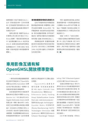 www.eettaiwan.com | 2025%u5e747-8%u670822 INDUSTRY TRENDS%u78bc%u6a19%u6e96%u8981%u6c42%uff0c%u800c%u4e26%u4e0d%u9069%u7528%u65bcASIL-A%u3002%u300d%u6b64%u5916%uff0c%u5373%u4f7f%u662f%u8a2d%u8a08%u55ae%u4e00%u5143%u4ef6%u7684%u4f9b%u61c9%u5546%uff0c%u4e5f%u53ef%u80fd%u88ab%u5ba2%u6236%u8981%u6c42%u9054%u5230ASIL-D%u7684%u898f%u7bc4%uff0c%u4ee5%u78ba%u4fdd%u5176%u7522%u54c1%u80fd%u5ee3%u6cdb%u61c9%u7528%u65bc%u4e0d%u540c%u8eca%u578b%u5e73%u53f0%u4e2d%u3002%u503c%u5f97%u6ce8%u610f%u7684%u662f%uff0c%u9700%u8981%u7b26%u5408ASIL-A%u7684%u5c08%u6848%u6bd4%u4f8b%u4e5f%u8f03%u53bb%u5e74%u589e%u52a0%u4e865%%u3002Britton%u89e3%u91cb%uff1a%u300c%u50cf%u662f%u8cc7%u8a0a%u5a1b%u6a02%u7cfb%u7d71%u4e2d%uff0c%u6709%u4e9b%u6a21%u7d44%u5c6c%u65bcASIL-A%uff0c%u6709%u4e9b%u5247%u70baASIL-B%u3002%u9019%u985e%u529f%u80fd%u8d8a%u4f86%u8d8a%u5e38%u88ab%u6574%u5408%u9032%u8eca%u8f1b%u8a2d%u8a08%u4e2d%uff0c%u4e0d%u518d%u53ea%u662f%u70ba%u4e86%u5b89%u5168%u99d5%u99db%uff0c%u800c%u662f%u5e0c%u671b%u63d0%u5347%u4e58%u5ba2%u6574%u9ad4%u4e58%u8eca%u9ad4%u9a57%u3002%u300d%u8eca%u7528%u8edf%u9ad4%u958b%u767c%u9818%u57df%u4ecd%u5177%u5438%u5f15%u529b%u8fd1%u4f86%u6c7d%u8eca%u7522%u696d%u8207%u5176%u4f9b%u61c9%u93c8%u6b77%u7d93%u6578%u6ce2%u91cd%u7d44%u8207%u88c1%u54e1%u6f6e%uff0c%u8edf%u9ad4%u958b%u767c%u4eba%u54e1%u81ea%u7136%u4e5f%u611f%u53d7%u5230%u885d%u64ca%u3002Britton%u5766%u8a00%uff1a%u300c%u4ed6%u5011%u5099%u611f%u7126%u616e%u3002%u81ea%u5f9e%u6211%u5011%u5b8c%u6210%u9019%u4efd%u5831%u544a%u5f8c%uff0c%u60c5%u6cc1%u5176%u5be6%u8b8a%u5f97%u66f4%u7cdf%u3002%u4e16%u754c%u5145%u6eff%u4e0d%u78ba%u5b9a%u6027%uff0c%u6211%u5011%u6bcf%u5929%u9192%u4f86%u4f3c%u4e4e%u7e3d%u6703%u9047%u5230%u65b0%u7684%u7169%u60f1%uff0c%u9019%u8b93%u4eba%u5c0d%u672a%u4f86%u7f3a%u4e4f%u4fe1%u5fc3%u3002%u300d%u6839%u64da%u8abf%u67e5%u7d50%u679c%uff0c%u5f71%u97ff%u8eca%u7528%u7d44%u7e54%u6700%u6df1%u7684%u5916%u90e8%u56e0%u7d20%u4f9d%u7136%u662f%u5168%u7403%u7d93%u6fdf%u72c0%u6cc1(50%)%uff0c%u5176%u6b21%u5247%u662f%u4eba%u529b%u8cc7%u6e90%u8b8a%u52d5(34%)%uff0c%u5982%u4f01%u696d%u5927%u91cf%u5c07%u4eba%u624d%u8207%u8cc7%u6e90%u5916%u5305%u81f3%u5176%u4ed6%u5730%u5340%u3002%u7136%u800c%uff0c%u7576%u88ab%u554f%u5230%u662f%u5426%u64d4%u5fc3%u7d93%u6fdf%u524d%u666f%u6703%u5f71%u97ff%u5e74%u8f15%u4e00%u4ee3%u5c0d%u8eca%u7528%u7522%u696d%u7684%u6295%u5165%u610f%u9858%u6642%uff0cBritton%u8868%u793a%u4e26%u4e0d%u60b2%u89c0%u3002%u5979%u6307%u51fa%uff0c%u6c7d%u8eca%u7522%u696d%uff0c%u7279%u5225%u662f%u5728AI%u9818%u57df%uff0c%u4ecd%u5145%u6eff%u5275%u65b0%u8207%u5438%u5f15%u529b%uff0c%u5c0d%u5b78%u751f%u800c%u8a00%u4ecd%u5177%u9ad8%u5ea6%u5438%u5f15%u529b%u3002%u5979%u9032%u4e00%u6b65%u8868%u793a%uff0c%u300c%u5728%u822a%u592a%u9818%u57df%uff0c%u4e00%u9805%u8a2d%u8a08%u5f9e%u958b%u59cb%u5230%u5be6%u969b%u61c9%u7528%u53ef%u80fd%u9700%u8981%u5341%u5e74%uff1b%u4f46%u5728%u6c7d%u8eca%u7522%u696d%uff0c%u5169%u4e09%u5e74%u5167%u5c31%u80fd%u770b%u5230%u81ea%u5df1%u958b%u767c%u7684%u6280%u8853%u6295%u5165%u5be6%u969b%u4f7f%u7528%u3002%u300d%u5c0d%u65bc%u5e74%u8f15%u5de5%u7a0b%u5e2b%u4f86%u8aaa%uff0c%u9019%u7a2e%u770b%u5f97%u898b%u6210%u679c%u7684%u6210%u5c31%u611f%u7121%u7591%u662f%u4e00%u7a2e%u6fc0%u52f5%u3002%u4e00%u7fa4%u4f86%u81ea%u8eca%u7528%u50f9%u503c%u93c8%u95dc%u9375%u74b0%u7bc0%u7684%u4f01%u696d%u5171%u540c%u767c%u8d77%u6210%u7acb%u4e86OpenGMSL%u5354%u6703(OpenGMSL Association)%uff0c%u76ee%u6a19%u5728%u65bc%u70ba%u6c7d%u8eca%u751f%u614b%u7cfb%u5efa%u7acb%u4e00%u5957%u958b%u653e%u3001%u5168%u7403%u901a%u7528%u7684%u5f71%u50cf%u8cc7%u6599%u50b3%u8f38%u6a19%u6e96%u3002%u8a72%u65b0%u806f%u76df%u5c07%u805a%u7126%u65bc%u63a8%u52d5%u696d%u754c%u570d %u7e5e %u7f8e%u5546 %u4e9e%u5fb7 %u8afe %u534a %u5c0e %u9ad4 ( A n a l o g Devices Inc.%uff0cADI)%u63a8%u51fa%u7684GMSL (Gigabit Multimedia Serial Link)%u6280%u8853%u5efa%u7acb%u7d71%u4e00%u898f%u7bc4%u3002%u64daADI%u8868%u793a%uff0cGMSL%u6280%u8853%u5df2%u5728%u5168%u7403%u7d2f%u7a4d%u51fa%u8ca8%u8d85%u904e10%u5104%u9846%u6676%u7247%uff0c%u4e26%u5728%u904e%u53bb12%u5e74%u9593%u88ab25%u5bb6%u4ee5%u4e0aOEM%u63a1%u7528%u3002%u8a72%u6280%u8853%u53ef%u671b%u89e3%u6c7a%u76ee%u524d%u5728%u81ea%u52d5%u99d5%u99db%u3001%u5148%u9032%u99d5%u99db%u8f14%u52a9%u7cfb%u7d71(ADAS)%u8207%u8eca%u8f09%u5a1b%u6a02%u7b49%u61c9%u7528%u4e2d%uff0c%u7531%u65bc%u5f71%u50cf%u50b3%u8f38%u89e3%u6c7a%u65b9%u6848%u904e%u5ea6%u788e%u7247%u5316%u800c%u96e3%u4ee5%u6574%u5408%u7684%u554f%u984c%u3002OpenGMSL%u5354%u6703%u70ba%u975e%u71df %u5229 %u7d44 %u7e54%uff0c%u76ee %u524d %u5275 %u59cb %u6703 %u54e1 %u5305%u62ec%uff1aADI%u3001Aptiv%u3001Coilcraf t%u3001Core Microelectronics%u3001%u96fb%u88dd(Denso)%u3001E t h e r n o v i a%u3001G e e l y H o l d i n g Group%u3001GlobalFoundries%u3001Granite River Labs%u3001indie Semiconductor%u3001%u662f%u5fb7%u79d1%u6280(Keysight Technologies)%u3001H y u n d a i M o b i s%u3001%u6751 %u7530 %u88fd %u4f5c %u6240(Murata Manufacturing)%u3001NOFFZ Technologies%u3001Omnivision%u3001%u9ad8%u901a(Qualcomm)%u3001%u7f85%u5fb7%u53f2%u74e6%u8332(Rohde & Schwarz)%u3001Rosenberger%u3001Teledyne %u8eca%u7528%u5f71%u50cf%u4e92%u901a%u6709%u89e3%u3000OpenGMSL%u958b%u653e%u6a19%u6e96%u767b%u5834Nitin Dahad%uff0cEE Times%u4e3b%u7de8LeCroy%u3001TDK%u3001TZ Electronic Systems %u4ee5%u53ca%u4f0d%u4ed5%u96fb%u5b50(W%u00fcrth Elektronik)%u3002%u5354%u6703%u5728%u65b0%u805e%u7a3f%u4e2d%u6307%u51fa%uff0c%u73fe%u4ee3%u6c7d%u8eca%u5c0d%u65bc%u5f9eADAS%u5230%u81ea%u52d5%u99d5%u99db%u8207%u8cc7%u8a0a%u5a1b%u6a02%u7cfb%u7d71%u7684%u529f%u80fd%u9700%u6c42%u8207%u65e5%u4ff1%u589e%uff0c%u5c0d%u65bc%u5f71%u50cf%u50b3%u8f38%u6280%u8853%u7684%u8981%u6c42%u4e5f%u96a8%u4e4b%u5347%u9ad8%u3002ADAS%u8996%u89ba%u7cfb%u7d71%u9700%u4ef0%u8cf4%u9ad8%u54c1%u8cea%u5f71%u50cf%u8cc7%u6599%u5373%u6642%u505a%u51fa%u5b89%u5168%u6c7a%u7b56%uff0c%u800c%u89f8%u63a7%u5f0f%u8eca%u8f09%u5a1b%u6a02%u7cfb%u7d71%u5247%u9700%u8981%u9ad8%u901f%u3001%u4f4e%u5ef6%u9072%u7684%u9023%u7dda%u9ad4%u9a57%uff0c%u624d%u80fd%u63d0%u4f9b%u6c89%u6d78%u5f0f%u4f7f%u7528%u611f%u53d7%u3002