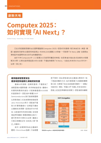 www.eettaiwan.com | 2025%u5e747-8%u670830 INNOVATIONS%u5275%u65b0%u5929%u5730Computex 2025%uff1a%u5982%u4f55%u5be6%u73fe%u300cAI Next%u300d%uff1fAnthea Chuang%u3001Susan Hong%uff0cEE Times Taiwan%u5df2%u57285%u6708%u5e95%u5713%u6eff%u843d%u5e55%u7684%u53f0%u5317%u570b%u969b%u96fb%u8166%u5c55(Computex 2025)%uff0c%u77ed%u77ed4%u5929%u7684%u5c55%u671f%uff0c%u5438%u5f15%u4f86%u81ea%u65e5%u672c%u3001%u7f8e%u570b%u3001%u97d3%u570b%u3001%u8d8a%u5357%u548c%u5370%u5ea6%u7b49152%u570b%u5bb6%u548c%u5730%u5340%u8cb7%u4e3b%uff0c%u5171%u8a0886,521%u4f4d%u89c0%u5c55%u4eba%u6b21%u8207%u6703%uff0c%u4e00%u540c%u63a2%u7d22%u300cAI Next%u300d%u4e3b%u8ef8%uff0c%u4e26%u5c55%u73fe%u53f0%u7063%u5730%u5340%u4f5c%u70ba%u570b%u969b%u79d1%u6280%u4ea4%u6d41%u5e73%u53f0%u7684%u95dc%u9375%u89d2%u8272%u3002%u7531%u65bc%u4eca%u5e74Computex%u4e2d%uff0c%u4eba%u5de5%u667a%u6167(AI)%u4ecd%u662f%u773e%u6240%u77da%u76ee%u7684%u7126%u9ede%uff0c%u5404%u5bb6%u696d%u8005%u4ea6%u7aef%u51fa%u5404%u5f0f%u5404%u6a23%u7684AI%u76f8%u95dc%u89e3%u6c7a%u65b9%u6848%uff0c%u4ee5%u671f%u4e5f%u80fd%u4e58%u8457%u9019%u80a1AI%u7684%u5927%u6d6a%u6f6e%uff0c%u4e0d%u50c5%u80fd%u5920%u5be6%u73fe%u300cAI Next%u300d%uff0c%u4e5f%u80fd%u5728%u672a%u4f86%u7684AI Next%u4e16%u4ee3%u4e2d%uff0c%u4f54%u5f97%u4e00%u5e2d%u4e4b%u5730%u3002%u78ba%u4fdd%u908a%u7de3%u667a%u6167%u66f4%u5b89%u5168%u3000%u9023%u63a5%u57df%u63a7%u5236%u5668%u7c21%u5316%u8eca%u8f1b%u8cc7%u5b89%u9632%u8b77%u908a %u7de3 A I%u7684 %u767c%u5c55 %u4e00%u76f4%u5099 %u53d7 %u91cd %u8996%uff0c%u4e0d%u50c5 %u662f%u70ba%u4e86%u6e1b%u8f15%u96f2%u7aefAI%u904b%u7b97%u8ca0%u8f09%uff0c%u8a31%u591a%u696d%u8005%u7686%u8a8d%u70ba%uff0c%u908a%u7de3 AI%u7684%u5be6 %u73fe %u8207 %u61c9 %u7528%u7684%u666e%u53ca%uff0c%u624d%u662f %u63a8 %u52d5 %u6574 %u500b A I%u5927 %u672a %u4f86%u7684 %u91cd %u8981 %u63a8 %u624b%u3002%u6069%u667a %u6d66 %u534a %u5c0e %u9ad4 (N X P Semiconductors)%u57f7%u884c%u526f%u7e3d%u88c1%u66a8%u985e%u6bd4%u8207%u8eca%u7528%u5d4c%u5165%u5f0f%u7cfb%u7d71%u4e8b%u696d%u90e8%u7e3d%u7d93%u7406Jens Hinrichsen%u8868%u793a%uff0c%u6069%u667a%u6d66%u4e0d%u50c5%u81f4%u529b%u65bc%u5be6%u73fe%u908a%u7de3 AI%uff0c%u4e26%u671f%u671b%u53ef%u8b93%u81ea%u4e3b%u908a%u7de3%u6210%u70ba%u73fe%u5be6%u3002%u9019%u662f%u7531%u65bcNXP%u8a8d%u70ba%uff0cAI%u7d93%u904e%u591a%u5e74%u7684%u6280%u8853%u6f14%u9032%uff0c%u4e26%u5f9e%u96f2%u7aef%u5ef6%u4f38%u5230%u908a%u7de3%uff0c%u96a8%u8457%u5177%u5099%u81ea%u4e3b%u80fd%u529b%uff0c%u9084%u53ef%u601d%u8003%u7684%u4ee3 %u7406%u5f0f AI%u51fa%u73fe%uff0c%u908a%u7de3 AI%u5df2%u771f%u6b63%u5177%u5099%u81ea%u4e3b%u6027%uff0c%u4e26%u6210%u70ba%u4eba%u985e%u300c%u771f%u6b63%u300d%u7684%u5925%u4f34%u3002%u5176%u4e2d%uff0c%u81ea%u99d5%u8eca%u5373%u70ba%u81ea%u4e3b %u908a %u7de3%u7684%u9ad4%u73fe%u3002Hinrichsen%u5f37%u8abf%uff0c%u53ea%u6709%u786c%u9ad4%u662f%u4e0d%u5920%u7684%uff0c%u56e0%u6b64%u6069%u667a%u6d66%u5728%u81ea%u4e3b%u908a%u7de3 AI%u61c9%u7528%u4e2d%uff0c%u9664%u4e86%u900f%u904e%u4f75%u8cfc%u7684%u65b9%u5f0f%uff0c%u70ba%u5e02%u5834%u9810%u5099%u4e86AI%u76f8%u95dc%u8edf%u9ad4%u958b%u767c%u5de5%u5177%uff0c%u4e5f%u958b%u767c%u4e86%u81ea%u4e3b%u7cfb%u7d71%u9ad8%u5ea6%u4ef0%u8cf4%u7684%u2014%u2014%u7db2%u8def/%u529f%u80fd%u5b89%u5168%u3001%u96b1%u79c1%u2026%u7b49%u8b93%u4eba%u5011%u300c%u4fe1%u8cf4%u300d%u7684%u5b89%u5168%u6280%u8853%u3002%u900f%u904e%u4e0a%u8ff0%u9019%u4e9b%u6e96%u5099%u8207%u6280%u8853%u5be6%u529b%uff0c%u6069%u667a%u6d66%u5c07%u6301%u7e8c%u671d%u6069%u667a%u6d66OrangeBox 2.0%u9023%u63a5%u57df%u63a7%u5236%u5668%u67b6%u69cb%u5716%u3002 (%u4f86%u6e90%uff1a%u6069%u667a%u6d66)
