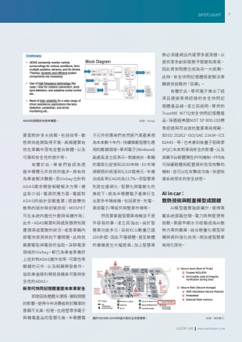 2025%u5e747-8%u6708 | www.eettaiwan.com72025%u5e747-8%u6708 | www.eettaiwan.comSPOTLIGHT 7ADAS%u7684%u6311%u6230%u8207%u7cfb%u7d71%u67b6%u69cb%u5716%u3002%u0009 %u0009 %u0009 %u0009 %u0009 %u0009%u0009%u0009%u0009%u0009%u0009%u0009%u0009%u0009%u0009%u0009%u0009%u0009%u0009%u0009%u0009%u0009%u0009%u0009%u0009%u0009%u0009(%u4f86%u6e90%uff1aVishay)%u57fa%u65bcISO/SAE 21434%u7684%u6676%u7247%u8a2d%u8a08%u5168%u6d41%u7a0b%u7ba1%u7406%u3002%u0009 %u0009 %u0009 %u0009 %u0009%u0009%u0009%u0009%u0009%u0009%u0009%u0009%u0009%u0009%u0009%u0009%u0009%u0009%u0009%u0009%u0009(%u4f86%u6e90%uff1a%u83ef%u90a6%u96fb%u5b50)%u8981%u9762%u5c0d%u8a31%u591a%u5927%u6311%u6230%uff0c%u5305%u62ec%u6548%u7387%u3001%u52d5%u614b%u8207%u6548%u80fd%u9593%u53d6%u5f97%u5e73%u8861%u3001%u9ad8%u983b%u904b%u7b97%u6709%u6548%u5728%u8eca%u8f1b%u4e2d%u843d%u5730%u4e26%u6574%u5408%u8edf%u9ad4%uff0c%u4ee5%u53ca%u53ef%u9760%u548c%u5b89%u5168%u6027%u7684%u63d0%u5347%u7b49%u3002%u6709 %u9452 %u65bc %u6b64%uff0c%u696d %u8005 %u5011 %u7686 %u8a8d %u70ba %u900f%u904e%u534a%u5c0e%u9ad4%u5143%u4ef6%u6280%u8853%u7684%u9032%u6b65%uff0c%u5c07%u6709%u6548%u70ba%u696d%u8005%u89e3%u6c7a%u96e3%u984c%uff0c%u800cVishay%u4e5f%u91dd%u5c0dADAS%u9700%u6c42%u958b%u767c%u76f8%u95dc%u89e3%u6c7a%u65b9%u6848%u3002%u694a%u76ca%u5f70%u4ecb%u7d39%uff0c%u96fb%u6e90%u4f9b%u61c9%u65b9%u9762%uff0c%u96fb%u611f%u5c0dADAS%u7684%u8a2d%u8a08%u81f3%u95dc%u91cd%u8981%uff1b%u900f %u904e%u96d9%u5411%u6563%u71b1%u7684%u8a2d%u8a08%u8207%u5c01%u88dd%u6280%u8853%uff0cMOSFET%u53ef%u5728%u7cfb%u7d71%u5167%u64d4%u4efb%u5347%u58d3%u8207%u4fdd%u8b77%u4f5c%u7528%uff1b%u6b64%u5916%uff0cADAS%u9700%u8981%u5229%u7528%u611f%u6e2c%u5668%u5f97%u77e5%u5468%u906d%u74b0%u5883%u6216%u99d5%u99db%u7684%u72c0%u6cc1%uff0c%u6216%u662f%u8eca%u8f1b%u5167%u90e8%u96fb%u6d41%u5075%u6e2c%u8207%u6297%u5e72%u64fe%u554f%u984c%uff0c%u6b64%u6642%u5c31%u9700%u8981%u96fb%u963b%u8207%u96fb%u5bb9%u7684%u5354%u52a9%u3002%u6df1%u8015%u96fb%u6e90%u9818%u57df%u7684Vishay%uff0c%u90fd%u5df2%u70ba%u696d%u8005%u6e96%u5099%u597d%u4e0a%u8ff0%u91dd%u5c0dADAS%u904b%u4f5c%u6548%u7387%u3001%u53ef%u9760%u6027%u7b49%u95dc%u9375%u7684%u5143%u4ef6%uff0c%u4ee5%u53ca%u76f8%u95dc%u958b%u767c%u5957%u4ef6%uff0c%u5354%u52a9%u696d%u8005%u9806%u5229%u958b%u767c%u5177%u5099%u9ad8%u53ef%u9760%u8207%u5b89%u5168%u6027%u7684ADAS%u3002%u65b0%u4e16%u4ee3%u5feb%u9583%u8a18%u61b6%u9ad4%u91cd%u5851%u672a%u4f86%u8eca%u5b89%u5168%u5373%u4f7f%u56e0%u70ba%u6574%u9ad4%u5927%u74b0%u5883%u3001%u95dc%u7a05%u554f%u984c%u7684%u5f71%u97ff%uff0c%u4f7f%u5f97%u4eca%u5e74%u6d88%u8cbb%u8005%u5c0d%u65bc%u8cfc%u8eca%u7684%u610f%u9858%u4e0d%u592a%u9ad8%u3001%u4f46%u662f%uff0c%u5728%u7d93%u6b77%u773e%u591a%u96fb%u5b50%u8207%u6a5f%u96fb%u7522%u54c1%u7684%u667a%u6167%u5316%u5f8c%uff0c%u534a%u5c0e%u9ad4%u96fb%u5b50%u5143%u4ef6%u4f9b%u61c9%u5546%u5011%u4f9d%u7136%u5c07%u6c7d%u8eca%u7522%u696d%u8996%u70ba%u672a%u4f86%u6578%u5341%u5e74%u5167%uff0c%u6301%u7e8c%u63a8%u52d5%u667a%u6167%u5316%u61c9%u7528%u7684%u95dc%u9375%u9818%u57df%u3002%u83ef%u90a6%u96fb%u5b50(Winbond)%u526f%u8655%u9577%u51cc%u7acb%u6c11%u8868%u793a%uff0c%u6839%u64da%u7d71%u8a08%uff0c%u8eca%u8f1b%u7684%u96fb%u6c23%u5316%u4fc3%u4f7f%u52302030%u5e74%u6642%uff0cEV%u5e02%u5834%u898f%u6a21%u9810%u8a08%u5c07%u9054%u52309,519%u5104%u7f8e%u5143%uff0c%u5e74%u8907%u5408%u6210%u9577%u7387(CAGR)%u70ba13.7%%u3002%u800c%u667a%u6167%u8eca%u5247%u662f%u5728%u9023%u7db2%u5316%u3001%u667a%u6167%u5316%u8207%u96fb%u52d5%u5316%u7684%u63a8%u52a9%u4e0b%uff0c%u5c07%u70ba%u534a%u5c0e%u9ad4%u96fb%u5b50%u7522%u696d%u884d%u751f%u51fa%u66f4%u591a%u5e02%u5834%u5546%u6a5f%uff0c%u5305%u62ec%u8cc7%u5b89%u3001%u5145%u96fb%u3001%u8eca%u7528%u96fb%u5b50/%u96f6%u7d44%u4ef6%u8207%u6574%u8eca%u5e02%u5834%u7b49%u3002%u7136%u800c%u8981%u638c%u63e1%u667a%u6167%u8eca%u5546%u6a5f%u4e26%u4e0d%u662f%u4ef6%u5bb9%u6613%u7684%u4e8b%uff0c%u51cc%u7acb%u6c11%u6307%u51fa%uff0c%u7531%u65bc%u667a%u6167%u8eca%u529f%u80fd%u591a%u5143%uff0c%u76ee%u524dECU%u6578%u91cf%u5df2%u9054100%u591a%u500b%uff0c%u56e0%u6b64%u4e0d%u50c5%u786c%u9ad4%uff0c%u751a%u81f3%u8edf%u9ad4%u7684%u8907%u96dc%u5ea6%u4e5f%u5927%u5e45%u63d0%u9ad8%uff1b%u52a0%u4e0a%u667a%u6167%u8eca%u52e2%u5fc5%u9808%u9023%u7db2%u4e14%u5167%u5efa%u773e%u591a%u611f%u6e2c%u5668%uff0c%u4ee5%u63d0%u4f9b%u66f4%u591a%u5275%u65b0%u670d%u52d9%u4e88%u99d5%u99db%u548c%u4e58%u5ba2%uff0c%u56e0%u6b64%u8cc7%u5b89%u554f%u984c%u4e5f%u6210%u70ba%u53e6%u4e00%u5927%u6311%u6230%u3002%u6b64%u6642%uff0c%u5b89%u5168%u5feb%u9583%u8a18%u61b6%u9ad4%u5c07%u662f%u89e3%u6c7a%u8eca%u8f1b%u8cc7%u5b89%u6311%u6230%u7684%u300c%u826f%u85e5%u300d%u3002%u6709%u9452%u65bc%u6b64%uff0c%u83ef%u90a6%u96fb%u5b50%u63a8%u51fa%u4e86%u7d93%u6fdf%u4e14%u901a%u904e%u8eca%u898f%u8a8d%u8b49%u7684%u5b89%u5168%u5feb%u9583%u8a18%u61b6%u9ad4%u7522%u54c1%u7dda%u3002%u51cc%u7acb%u6c11%u8aaa%u660e%uff0c%u83ef%u90a6%u7684TrustME W77Q%u5b89%u5168%u5feb%u9583%u8a18%u61b6%u9ad4%u7522%u54c1%uff0c%u9664%u901a%u904e%u7f8e%u570bNIST SP 800-193%u6a19%u6e96%u8a8d%u8b49%u8207%u7b26%u5408%u5176%u4ed6%u91cd%u8981%u8eca%u7528%u898f%u7bc4%uff0c%u5982ISO 20262%u3001ISO/SAE 21434%u3001ICE 62443%u2026%u7b49%uff0c%u4e5f%u8003%u616e%u5230%u5f8c%u91cf%u5b50%u5bc6%u78bc%u5b78(PQC)%u672a%u4f86%u5c0d%u8eca%u7528%u5b89%u5168%u7684%u5f71%u97ff%uff0c%u4ee5%u53ca%u5177%u5099%u5e73%u53f0%u97cc%u9ad4%u5f48%u6027(PFR)%u6a5f%u5236%u3002PFR%u70ba%u53ef%u4fdd%u8b77%u97cc%u9ad4%u548c%u914d%u7f6e%u8cc7%u6599%u514d%u53d7%u653b%u64ca%u7684%u6a5f%u5236%uff0c%u4e26%u53ef%u4ee5%u5728%u653b%u64ca%u6210%u529f%u5f8c%uff0c%u5feb%u901f%u6062%u5fa9%u7cfb%u7d71%u539f%u672c%u7684%u5b89%u5168%u72c0%u614b%u3002AI in car%uff1a%u6563%u71b1%u6280%u8853%u8207%u8f15%u91cf%u6a21%u578b%u6210%u95dc%u9375AI%u6a21%u578b%u904b%u7b97%u5f37%u5ea6%u98c6%u5347%uff0c%u4f7f%u5f97%u8eca%u8f09%u7cfb%u7d71%u9762%u81e8%u7a7a%u9593%u3001%u96fb%u529b%u8207%u71b1%u7ba1%u7406%u7b49%u6311%u6230%u3002%u8eca%u5ee0%u65e9%u671f%u6c34%u51b7%u7d93%u9a57%u6210%u70baAI%u6563%u71b1%u65b9%u6848%u7684%u5bf6%u5eab%uff0c%u7d50%u5408%u8f15%u91cf%u5316%u6a