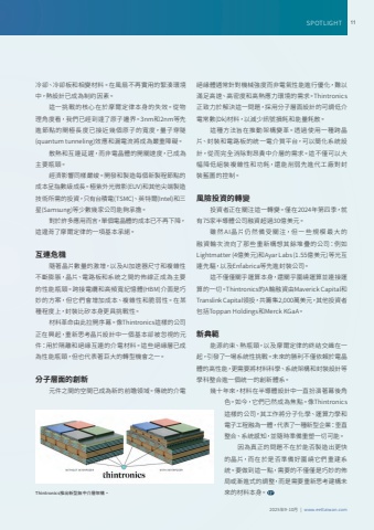 2025%u5e749-10%u6708 | www.eettaiwan.comSPOTLIGHT 11%u51b7%u537b%u3001%u51b7%u537b%u677f%u548c%u76f8%u8b8a%u6750%u6599%u3002%u5728%u98a8%u6247%u4e0d%u518d%u5be6%u7528%u7684%u7dca%u6e4a%u74b0%u5883%u4e2d%uff0c%u71b1%u8a2d%u8a08%u5df2%u6210%u70ba%u5236%u7d04%u56e0%u7d20%u3002%u9019%u4e00%u6311%u6230%u7684%u6838%u5fc3%u5728%u65bc%u6469%u723e%u5b9a%u5f8b%u672c%u8eab%u7684%u5931%u6548%u3002%u5f9e%u7269%u7406%u89d2%u5ea6%u770b%uff0c%u6211%u5011%u5df2%u7d93%u5230%u9054%u4e86%u539f%u5b50%u908a%u754c%u30023nm%u548c2nm%u7b49%u5148%u9032%u7bc0%u9ede%u7684%u9598%u6975%u9577%u5ea6%u5df2%u63a5%u8fd1%u5e7e%u500b%u539f%u5b50%u7684%u5bec%u5ea6%uff0c%u91cf%u5b50%u7a7f%u96a7(quantum tunneling)%u6548%u61c9%u548c%u6f0f%u96fb%u6d41%u5c07%u6210%u70ba%u56b4%u91cd%u969c%u7919%u3002%u6563%u71b1%u548c%u4e92%u9023%u5ef6%u9072%uff0c%u800c%u975e%u96fb%u6676%u9ad4%u7684%u958b%u95dc%u901f%u5ea6%uff0c%u5df2%u6210%u70ba%u4e3b%u8981%u74f6%u9838%u3002%u7d93%u6fdf%u5f71%u97ff%u540c%u6a23%u56b4%u5cfb%u3002%u958b%u767c%u548c%u88fd%u9020%u6bcf%u500b%u65b0%u88fd%u7a0b%u7bc0%u9ede%u7684%u6210%u672c%u5448%u6307%u6578%u7d1a%u6210%u9577%u3002%u6975%u7d2b%u5916%u5149%u5fae%u5f71(EUV)%u548c%u5176%u4ed6%u5c16%u7aef%u88fd%u9020%u6280%u8853%u6240%u9700%u7684%u6295%u8cc7%uff0c%u53ea%u6709%u53f0%u7a4d%u96fb(TSMC)%u3001%u82f1%u7279%u723e(Intel)%u548c%u4e09%u661f(Samsung)%u7b49%u5c11%u6578%u5e7e%u5bb6%u516c%u53f8%u80fd%u5920%u627f%u64d4%u3002%u5c0d%u65bc%u8a31%u591a%u61c9%u7528%u800c%u8a00%uff0c%u55ae%u500b%u96fb%u6676%u9ad4%u7684%u6210%u672c%u5df2%u4e0d%u518d%u4e0b%u964d%uff0c%u9019%u9055%u80cc%u4e86%u6469%u723e%u5b9a%u5f8b%u7684%u4e00%u9805%u57fa%u672c%u627f%u8afe%u3002%u4e92%u9023%u5371%u6a5f%u96a8%u8457%u6676%u7247%u6578%u91cf%u7684%u6fc0%u589e%uff0c%u4ee5%u53caAI%u52a0%u901f%u5668%u5c3a%u5bf8%u548c%u8907%u96dc%u6027%u4e0d%u65b7%u81a8%u8139%uff0c%u6676%u7247%u3001%u96fb%u8def%u677f%u548c%u7cfb%u7d71%u4e4b%u9593%u7684%u4f48%u7dda%u6b63%u6210%u70ba%u4e3b%u8981%u7684%u6027%u80fd%u74f6%u9838%u3002%u8de8%u63a5%u96fb%u7e9c%u548c%u9ad8%u983b%u5bec%u8a18%u61b6%u9ad4(HBM)%u4ecb%u9762%u662f%u5de7%u5999%u7684%u65b9%u6848%uff0c%u4f46%u5b83%u5011%u6703%u589e%u52a0%u6210%u672c%u3001%u8907%u96dc%u6027%u548c%u8106%u5f31%u6027%u3002%u5728%u67d0%u7a2e%u7a0b%u5ea6%u4e0a%uff0c%u5c01%u88dd%u6bd4%u77fd%u672c%u8eab%u66f4%u5177%u6311%u6230%u6027%u3002%u6750%u6599%u9769%u547d%u7531%u6b64%u62c9%u958b%u5e8f%u5e55%u3002%u50cfThintronics%u9019%u6a23%u7684%u516c%u53f8%u6b63%u5728%u8208%u8d77%uff0c%u91cd%u65b0%u601d%u8003%u6676%u7247%u8a2d%u8a08%u4e2d%u4e00%u500b%u57fa%u672c%u537b%u88ab%u5ffd%u8996%u7684%u5143%u4ef6%uff1a%u7528%u65bc%u9694%u96e2%u548c%u7d55%u7de3%u4e92%u9023%u7684%u4ecb%u96fb%u6750%u6599%u3002%u9019%u4e9b%u7d55%u7de3%u5c64%u5df2%u6210%u70ba%u6027%u80fd%u74f6%u9838%uff0c%u4f46%u4e5f%u4ee3%u8868%u8457%u5de8%u5927%u7684%u8f49%u578b%u6a5f%u6703%u4e4b%u4e00%u3002%u5206%u5b50%u5c64%u9762%u7684%u5275%u65b0%u5143%u4ef6%u4e4b%u9593%u7684%u7a7a%u9593%u5df2%u6210%u70ba%u65b0%u7684%u524d%u77bb%u9818%u57df%u3002%u50b3%u7d71%u7684%u4ecb%u96fb%u7d55%u7de3%u9ad4%u901a%u5e38%u91dd%u5c0d%u6a5f%u68b0%u5f37%u5ea6%u800c%u975e%u96fb%u6c23%u6027%u80fd%u9032%u884c%u512a%u5316%uff0c%u96e3%u4ee5%u6eff%u8db3%u9ad8%u901f%u3001%u9ad8%u5bc6%u5ea6%u548c%u9ad8%u71b1%u61c9%u529b%u74b0%u5883%u7684%u9700%u6c42%u3002Thintronics%u6b63%u81f4%u529b%u65bc%u89e3%u6c7a%u9019%u4e00%u554f%u984c%uff0c%u63a1%u7528%u5206%u5b50%u5c64%u9762%u8a2d%u8a08%u7684%u53ef%u8abf%u4f4e%u4ecb%u96fb%u5e38%u6578(Dk)%u6750%u6599%uff0c%u4ee5%u6e1b%u5c11%u8a0a%u865f%u640d%u8017%u548c%u80fd%u91cf%u8017%u6563%u3002%u9019%u7a2e%u65b9%u6cd5%u65e8%u5728%u63a8%u52d5%u67b6%u69cb%u8b8a%u9769%u3002%u900f%u904e%u4f7f%u7528%u4e00%u7a2e%u8de8%u6676%u7247%u3001%u5c01%u88dd%u548c%u96fb%u8def%u677f%u7684%u7d71%u4e00%u96fb%u4ecb%u8cea%u5e73%u53f0%uff0c%u53ef%u4ee5%u7c21%u5316%u7cfb%u7d71%u8a2d%u8a08%uff0c%u5f9e%u800c%u5b8c%u5168%u6d88%u9664%u5c0d%u6602%u8cb4%u4e2d%u4ecb%u5c64%u7684%u9700%u6c42%u3002%u9019%u4e0d%u50c5%u53ef%u4ee5%u5927%u5e45%u964d%u4f4e%u7d44%u88dd%u8907%u96dc%u6027%u548c%u529f%u8017%uff0c%u9084%u80fd%u524a%u5f31%u5148%u9032%u4ee3%u5de5%u5ee0%u5c0d%u5c01%u88dd%u85cd%u5716%u7684%u63a7%u5236%u3002%u98a8%u96aa%u6295%u8cc7%u7684%u8f49%u8b8a%u6295%u8cc7%u8005%u6b63%u5728%u95dc%u6ce8%u9019%u4e00%u8f49%u8b8a%u3002%u50c5%u57282024%u5e74%u7b2c%u56db%u5b63%uff0c%u5c31%u670975%u5bb6%u534a%u5c0e%u9ad4%u516c%u53f8%u878d%u8cc7%u8d85%u904e30%u5104%u7f8e%u5143%u3002%u96d6 %u7136 A I%u6676%u7247%u4ecd %u7136%u5099 %u53d7 %u95dc %u6ce8%uff0c%u4f46%u4e00 %u4e9b %u898f %u6a21 %u6700 %u5927 %u7684%u878d%u8cc7%u8f2a%u6b21%u6d41%u5411%u4e86%u90a3%u4e9b%u91cd%u65b0%u69cb%u60f3%u5176%u9918%u5806%u758a%u7684%u516c%u53f8%uff1a%u4f8b%u5982Lightmatter (4%u5104%u7f8e%u5143)%u548cAyar Labs (1.55%u5104%u7f8e%u5143)%u7b49%u5149%u4e92%u9023%u5148%u9a45%uff0c%u4ee5%u53caEnfabrica%u7b49%u5148%u9032%u5c01%u88dd%u516c%u53f8%u3002%u9019%u4e0d%u50c5%u50c5%u95dc%u4e4e%u904b%u7b97%u672c%u8eab%uff0c%u9084%u95dc%u4e4e%u570d%u7e5e%u904b%u7b97%u4e26%u9023%u63a5%u904b%u7b97%u7684%u4e00%u5207%u3002Thintronics%u7684A%u8f2a%u878d%u8cc7%u7531Maverick Capital%u548cTranslink Capital%u9818%u6295%uff0c%u5171%u7c4c%u96c62,000%u842c%u7f8e%u5143%uff0c%u5176%u4ed6%u6295%u8cc7%u8005%u5305%u62ecToppan Holdings%u548cMerck KGaA%u3002%u65b0%u5178%u7bc4%u80fd%u6e90%u7d04%u675f%u3001%u71b1%u74f6%u9838%uff0c%u4ee5%u53ca%u6469%u723e%u5b9a%u5f8b%u7684%u7d42%u7d50%u4ea4%u7e54%u5728%u4e00%u8d77%uff0c%u5f15%u767c%u4e86%u4e00%u5834%u7cfb%u7d71%u6027%u6311%u6230%u3002%u672a%u4f86%u7684%u52dd%u5229%u4e0d%u50c5%u4f9d%u8cf4%u65bc%u96fb%u6676%u9ad4%u7684%u9ad8%u6027%u80fd%uff0c%u66f4%u9700%u8981%u5c07%u6750%u6599%u79d1%u5b78%u3001%u7cfb%u7d71%u67b6%u69cb%u548c%u5c01%u88dd%u8a2d%u8a08%u7b49%u5b78%u79d1%u6574%u5408%u9032%u4e00%u500b%u7d71%u4e00%u7684%u5275%u65b0%u9ad4%u7cfb%u3002%u5e7e%u5341%u5e74%u4f86%uff0c%u6750%u6599%u5728%u534a%u5c0e%u9ad4%u8a2d%u8a08%u4e2d%u4e00%u76f4%u626e%u6f14%u8457%u5e55%u5f8c%u89d2%u8272%u3002%u5982%u4eca%uff0c%u5b83%u5011%u5df2%u7136%u6210%u70ba%u7126%u9ede%u3002%