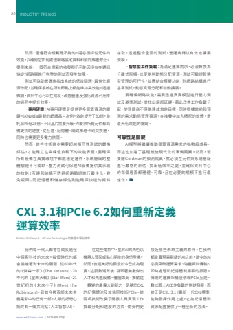 www.eettaiwan.com | 2025%u5e749-10%u670822 INDUSTRY TRENDS%u7136%u800c%uff0c%u50c5%u50c5%u7b26%u5408%u898f%u7bc4%u662f%u4e0d%u5920%u7684%uff0c%u9084%u5fc5%u9808%u8a55%u4f30%u5143%u4ef6%u7684%u6548%u80fd%uff0c%u4ee5%u78ba%u8a8d%u5b83%u5982%u4f55%u8655%u7406%u7db2%u8def%u5354%u5b9a%u8cc7%u6599%u548c%u524d%u5411%u8aa4%u5dee%u4fee%u6b63%u3002%u8209%u4f8b%u4f86%u8aaa%uff0c%u4e00%u500b%u7b26%u5408%u898f%u7bc4%u7684%u6536%u767c%u5668%u4ecd%u53ef%u80fd%u56e0%u6c92%u6709%u5728%u901a%u8a0a%u5354%u5b9a/%u7db2%u8def%u5c64%u9032%u884c%u5b8c%u6574%u7684%u6e2c%u8a66%u800c%u767c%u751f%u6545%u969c%u3002%u6e2c%u8a66%u53ef%u5354%u52a9%u71df%u904b%u5546%u627e%u51fa%u7cfb%u7d71%u7684%u4f4e%u6548%u554f%u984c%u3001%u6700%u4f73%u5316%u8cc7%u6e90%u5206%u914d%uff0c%u4e26%u78ba%u4fdd%u7cfb%u7d71%u5728%u6240%u6709%u7bc0%u9ede%u4e0a%u90fd%u80fd%u7dad%u6301%u9ad8%u6548%u80fd%u3002%u900f%u904e%u5fae%u8abf%uff0c%u8cc7%u6599%u4e2d%u5fc3%u53ef%u4ee5%u5728%u6210%u9577%u3001%u6539%u5584%u71df%u904b%u53ca%u5f37%u5316%u8cc7%u6e90%u5229%u7528%u7387%u7684%u904e%u7a0b%u4e2d%u63d0%u5347%u6548%u7387%u3002%uff0e%u5c08%u7528%u786c%u9ad4%uff1aAI%u5c08%u7528%u786c%u9ad4%u662f%u63d0%u4f9b%u66f4%u591a%u904b%u7b97%u8cc7%u6e90%u7684%u95dc%u9375%u3002%u4ee5Nvidia%u6700%u65b0%u7684%u8d85%u7d1a%u6676%u7247%u70ba%u4f8b%uff0c%u6548%u80fd%u63d0%u5347%u4e8630%u500d%uff0c%u80fd%u8017%u537b%u964d%u4f4e25%u500d%u3002%u4e0d%u53ea%u6676%u7247%u9700%u8981%u5347%u7d1a%uff0cAI%u8981%u6c42%u6240%u6709%u5143%u4ef6%u90fd%u5177%u5099%u66f4%u5feb%u7684%u901f%u5ea6%uff0c%u5f9e%u4e92%u9023%u3001%u8a18%u61b6%u9ad4%u3001%u7db2%u8def%u63a8%u7406%u5361%u5230%u4ea4%u63db%u5668%uff0c%u540c%u6642%u4e5f%u9700%u8981%u66f4%u591a%u96fb%u529b%u4f9b%u61c9%u3002%u7136%u800c%uff0c%u9019%u4e9b%u6280%u8853%u9032%u6b65%u9700%u8981%u8d85%u8d8a%u76f8%u7b26%u6027%u6e2c%u8a66%u7684%u56b4%u683c%u8a55%u4f30%uff0c%u624d%u80fd%u78ba%u7acb%u5728%u9ad8%u5cf0%u503c%u8ca0%u8f09%u4e0b%u7684%u6548%u80fd%u8868%u73fe%u3002%u8981%u78ba%u4fdd%u6240%u6709%u8a2d%u5099%u5728%u771f%u5be6%u74b0%u5883%u4e2d%u90fd%u80fd%u7a69%u5b9a%u904b%u4f5c%uff0c%u7cfb%u7d71%u5c64%u7d1a%u7684%u6574%u9ad4%u9a57%u8b49%u4e0d%u53ef%u6216%u7f3a%u3002%u58d3%u529b%u6e2c%u8a66%u53ef%u4fdd%u8b49AI%u8a2d%u5099%u63d0%u4f9b%u5176%u627f%u8afe%u7684%u6548%u80fd%uff1b%u4e92%u9023%u548c%u7d50%u69cb%u53ef%u900f%u904e%u7db2%u8def%u9a57%u8b49%u9032%u884c%u6700%u4f73%u5316%uff0c%u907f%u514d %u74f6 %u9838%uff1b%u800c%u8a18%u61b6 %u9ad4%u548c%u5132 %u5b58 %u8a55 %u4f30%u5247%u80fd%u78ba%u4fdd %u5feb %u901f%u7684%u8cc7 %u6599%u5b58%u53d6%u3002%u900f%u904e%u6574%u5408%u5168%u9762%u7684%u6e2c%u8a66%uff0c%u71df%u904b%u5546%u5f97%u4ee5%u6709%u6548%u5730%u64f4%u5c55%u898f%u6a21%u3002%uff0e%u667a%u6167%u578b%u5de5%u4f5c%u8ca0%u8f09%uff1a%u70ba%u6eff%u8db3%u904b%u7b97%u9700%u6c42%uff0c%u5fc5%u9808%u8f49%u63db%u70ba%u5206%u96e2%u5f0f%u67b6%u69cb%uff0c%u4ee5%u4fbf%u80fd%u5920%u52d5%u614b%u5206%u914d%u8cc7%u6e90%u3002%u6e2c%u8a66%u53ef%u9a57%u8b49%u667a%u6167%u578b%u7ba1%u7406%u7684%u53ef%u884c%u6027%uff0c%u4e26%u61c9%u7d50%u5408%u6a21%u64ec%u529f%u80fd%uff0c%u5c0d%u7db2%u8def%u7d50%u69cb%u9032%u884c%u57fa%u6e96%u6e2c%u8a66%uff0c%u52d5%u614b%u8cc7%u6e90%u5206%u914d%u548c%u81ea%u52d5%u64f4%u5c55%u3002%u8981%u78ba%u4fdd%u7db2%u8def%u6548%u80fd%uff0c%u9700%u8981%u900f%u904e%u771f%u5be6%u6a21%u578b%u9032%u884c%u58d3%u529b%u6e2c%u8a66%u53ca%u57fa%u6e96%u6e2c%u8a66%uff0c%u4e26%u627e%u51fa%u5c3e%u90e8%u5ef6%u9072%uff0c%u85c9%u6b64%u6539%u5584%u5de5%u4f5c%u8ca0%u8f09%u5206%u914d%uff0c%u4f7f%u71df%u904b%u5546%u4e0d%u50c5%u80fd%u9054%u6210%u6548%u80fd%u76ee%u6a19%uff0c%u540c%u6642%u6839%u64da%u7576%u524d%u548c%u9810%u6e2c%u7684%u9700%u6c42%u52d5%u614b%u7ba1%u7406%u8cc7%u6e90%u3002%u5728%u5806%u758a%u4e2d%u52a0%u5165%u7cbe%u5bc6%u7684%u8edf%u9ad4%uff0c%u662f%u6700%u5927%u5316%u6548%u80fd%u7684%u95dc%u9375%u3002%u53ef%u9760%u6027%u662f%u95dc%u9375AI%u6a21%u578b%u5c07%u7e7c%u7e8c%u63a8%u52d5%u904b%u7b97%u8cc7%u6e90%u9700%u6c42%u7684%u6307%u6578%u7d1a%u6210%u9577%uff0c%u800c%u9019%u4e5f%u52a0%u901f%u4e86%u57fa%u790e%u8a2d%u65bd%u73fe%u4ee3%u5316%u7684%u8ecd%u5099%u7af6%u8cfd%u3002%u7136%u800c%uff0c%u82e5%u8981%u8b93Goldman%u7684%u9810%u6e2c%u6210%u771f%uff0c%u5c31%u5fc5%u9808%u5728%u5143%u4ef6%u8207%u7cfb%u7d71%u5c64%u7d1a%u9032%u884c%u56b4%u683c%u7684%u8a55%u4f30%uff0c%u627e%u51fa%u4f4e%u6548%u7387%u4e4b%u8655%uff0c%u4e26%u78ba%u4fdd%u8cc7%u6599%u4e2d%u5fc3%u7684%u6bcf%u500b%u5c64%u9762%u90fd%u7a69%u5065%u3001%u53ef%u9760%uff0c%u4e14%u5728%u5fc5%u8981%u7684%u898f%u6a21%u4e0b%u9032%u884c%u6700%u4f73%u5316%u3002%u6211%u5011%u6bcf%u4e00%u4ee3%u4eba%u90fd%u6703%u5728%u6210%u9577%u904e%u7a0b%u4e2d%u63a2%u7d22%u79d1%u6280%u7684%u672a%u4f86%u3002%u6bcf%u500b%u6642%u4ee3%u4e5f%u90fd%u6703%u63cf%u7e6a%u8457%u5c0d%u672a%u4f86%u7684%u9858%u666f%uff1a%u5f9e60%u5e74%u4ee3%u7684%u300a%u5091%u68ee%u4e00%u5bb6%u300b(The Jetsons)%u300170%u5e74%u4ee3%u7684%u300a%u661f%u969b%u5927%u6230%u300b(Star Wars)%u300121%u4e16%u7d00%u521d%u7684%u300a%u672a%u4f86%u5c0f%u5b50%u300b(Meet the Robinsons)%uff0c%u5230%u5982%u4eca%u6578%u767e%u90e8%u672a%u4f86%u4e3b%u7fa9%u96fb%u5f71%u4e2d%u7684%u4efb%u4f55%u4e00%u90e8%u3002%u4eba%u985e%u7684%u597d%u5947%u5fc3%u59cb%u7d42%u6709%u4e00%u500b%u5171%u540c%u9ede%uff1a%u4eba%u5de5%u667a%u6167(AI)%u3002%u5728%u9019%u4e9b%u96fb%u5f71%u4e2d%uff0c%u57fa%u65bcAI%u7684%u89d2%u8272%u4ee5%u6a5f%u5668%u4eba%u7ba1%u5bb6%u6216%u8cbc%u5fc3%u670b%u53cb%u7684%u8eab%u4efd%u767b%u5834%u3002%u7136%u800c%uff0c%u66fe%u7d93%u7f8e%u597d%u7684%u9858%u666f%u5982%u4eca%u5df2%u6210%u70ba%u73fe%u5be6%u3002%u9019%u80a1%u71b1%u6f6e%u80cc%u5f8c%uff0c%u51dd%u805a%u8457%u7121%u6578%u5091%u51fa%u4eba%u624d%u548c%u5148%u9032%u8a2d%u5099%u3002%u5118%u7ba1%u5982%u6b64%uff0c%u63a8%u52d5%u9019%u4e00%u8f49%u8b8a%u7684%u6700%u5049%u5927%u5275%u65b0%u4e4b%u4e00%u662f%u57fa%u65bcCXL%u7684%u8a18%u61b6%u9ad4%u6c60%u53ca%u5176%u5354%u540c%u6280%u8853PCIe%u3002%u9019%u5169%u9805%u6280%u8853%u6539%u8b8a%u4e86%u958b%u767c%u4eba%u54e1%u5be6%u73fe%u5de5%u4f5c%u8ca0%u8f09%u5206%u914d%u548c%u901f%u5ea6
