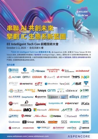 www.eettaiwan.com | www.edntaiwan.comEE Intelligent Tech Con %u524d%u77bb%u6280%u8853%u5927%u6703October 1-2, 2025 %u2022 %u53f0%u5317%u6587%u5275 6 %u6a13%u4e32%u806f AI %u5171%u5275%u672a%u4f86%u64d8%u5283 IC %u751f%u614b%u7cfb%u65b0%u85cd%u5716%u300c2025 EE Intelligent Tech Con %u524d%u77bb%u6280%u8853%u5927%u6703%u300d%u7531 AspenCore %u4e3b%u8fa6%uff0c%u4e26%u7372 EE Times Taiwan %u8207 EDN Taiwan %u652f%u6301%u3002%u9019%u5834%u70ba%u671f%u5169%u5929%u7684%u76db%u6703%u4ee5%u300c%u908a%u7de3%u667a%u6167%uff08Intelligent Edge%uff09%u300d%u70ba%u6838%u5fc3%uff0c%u532f%u805a%u5168%u7403 IC %u751f%u614b%u7cfb%u5c08%u5bb6%u8207%u7522%u696d%u9818%u8896%uff0c%u6df1%u5165%u63a2%u8a0e AI %u6280%u8853%u7684%u6700%u65b0%u61c9%u7528%u8207%u5f71%u97ff%u3002%u5927%u6703%u540c%u6642%u898f%u5283%u591a%u5834%u8ad6%u58c7%u8207%u6280%u8853%u5c55%u5340%uff0c%u6db5%u84cb AI %u667a%u6167%u908a%u7de3%u3001%u667a%u6167%u751f%u6d3b%u8207%u524d%u77bb%u79d1%u6280%u7b49%u71b1%u9580%u9818%u57df%uff0c%u5168%u9762%u5c55%u73fe%u5275%u65b0%u7522%u54c1%u8207%u524d%u6cbf%u6280%u8853%u3002%u5354%u529b%u4f01%u696dDIGILENT %u53f0%u7063%u6b63%u5f0f%u6388%u6b0a%u4ee3%u7406%u5546%u9084%u6709%u66f4%u591a%u5ee0%u5546%uff01