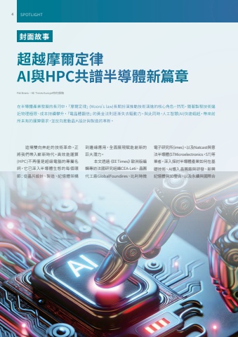 www.eettaiwan.com | 2025%u5e749-10%u67084 SPOTLIGHT%u8d85%u8d8a%u6469%u723e%u5b9a%u5f8bAI%u8207HPC%u5171%u8b5c%u534a%u5c0e%u9ad4%u65b0%u7bc7%u7ae0Pat Brans%uff0cEE Times Europe%u7279%u7d04%u64b0%u7a3f%u5c01%u9762%u6545%u4e8b%u5728%u534a%u5c0e%u9ad4%u7522%u696d%u767c%u5c55%u7684%u9577%u6cb3%u4e2d%uff0c%u300c%u6469%u723e%u5b9a%u5f8b%u300d(Moore's law)%u9577%u671f%u626e%u6f14%u63a8%u52d5%u6280%u8853%u6f14%u9032%u7684%u6838%u5fc3%u89d2%u8272%u3002%u7136%u800c%uff0c%u96a8%u8457%u88fd%u7a0b%u6280%u8853%u903c%u8fd1%u7269%u7406%u6975%u9650%u3001%u6210%u672c%u6301%u7e8c%u6500%u5347%uff0c%u300c%u96fb%u6676%u9ad4%u7ffb%u500d%u300d%u7684%u9ec3%u91d1%u6cd5%u5247%u9010%u6f38%u5931%u53bb%u9a45%u52d5%u529b%u3002%u8207%u6b64%u540c%u6642%uff0c%u4eba%u5de5%u667a%u6167(AI)%u5feb%u901f%u5d1b%u8d77%uff0c%u5e36%u4f86%u524d%u6240%u672a%u6709%u7684%u904b%u7b97%u9700%u6c42%uff0c%u4e26%u53cd%u5411%u63a8%u52d5%u6676%u7247%u8a2d%u8a08%u8207%u88fd%u9020%u7684%u9769%u65b0%u3002%u5230%u908a%u7de3%u61c9%u7528%uff0c%u5168%u9762%u5c55%u73fe%u8ce6%u80fd%u5275%u65b0%u7684%u5de8%u5927%u6f5b%u529b%u3002%u672c%u6587%u900f%u904e%u300aEE Times%u300b%u6b50%u6d32%u7248%u7de8%u8f2f%u5c08%u8a2a%u6cd5%u570b%u7814%u7a76%u7d44%u7e54CEA-Leti%u3001%u6676%u5713%u4ee3%u5de5%u5ee0GlobalFoundires%u3001%u6bd4%u5229%u6642%u5fae%u9019%u5834%u96d9%u5411%u5954%u8d74%u7684%u6280%u8853%u9769%u547d%uff0c%u6b63%u5c07%u6211%u5011%u5e36%u5165%u5d84%u65b0%u6642%u4ee3%u3002%u9ad8%u6548%u80fd%u904b%u7b97(HPC)%u4e0d%u518d%u50c5%u662f%u8d85%u7d1a%u96fb%u8166%u7684%u5c08%u5c6c%u540d%u8a5e%uff0c%u5b83%u5df2%u6df1%u5165%u534a%u5c0e%u9ad4%u751f%u614b%u7684%u6bcf%u500b%u74b0%u7bc0%uff1a%u5f9e%u6676%u7247%u8a2d%u8a08%u3001%u88fd%u9020%u3001%u8a18%u61b6%u9ad4%u67b6%u69cb%u96fb%u5b50%u7814%u7a76%u6240(imec)%uff0c%u4ee5%u53caNatcast%u8207%u610f%u6cd5%u534a%u5c0e%u9ad4(STMicroelectronics%uff0cST)%u7b49%u696d%u8005%uff0c%u6df1%u5165%u63a2%u8a0e%u534a%u5c0e%u9ad4%u7522%u696d%u5982%u4f55%u5728%u57fa%u790e%u6280%u8853%u3001AI%u5c0e%u5165%u6676%u5713%u5ee0%u8207%u7814%u767c%u3001%u65b0%u8208%u8a18%u61b6%u9ad4%u82073D%u6574%u5408%uff0c%u4ee5%u53ca%u6c38%u7e8c%u8207%u570b%u969b%u5408